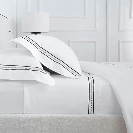 Jogo De Cama Queen Trento 800 Fios Buddemeyer Luxus Branco/Borda Azul 2,60 x 2,90 m