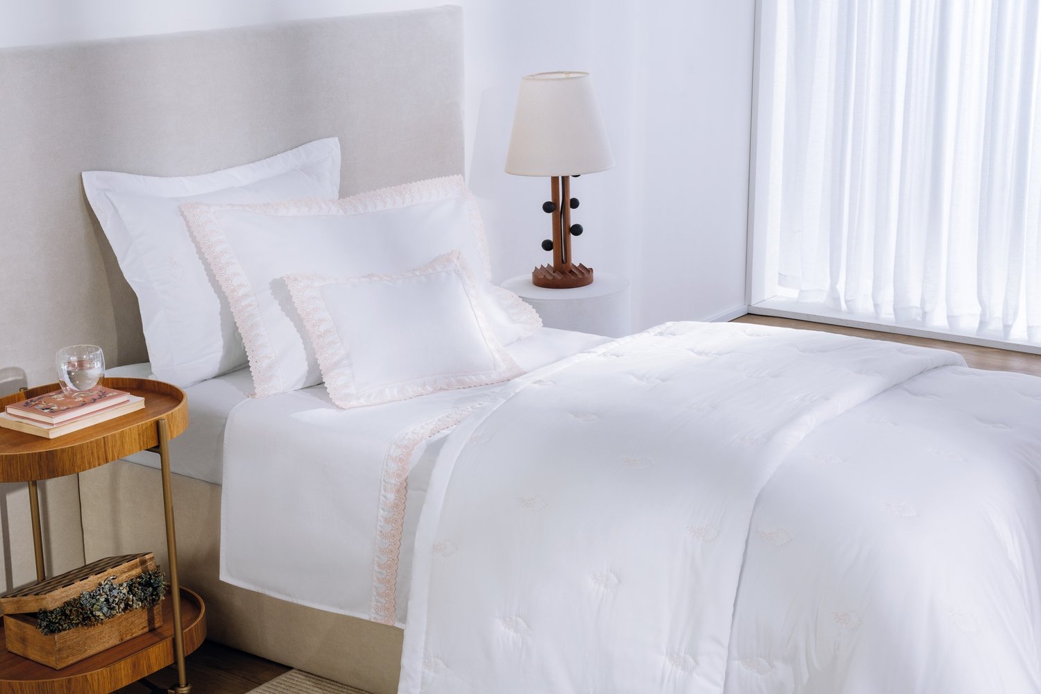A cama Bella traduz, com poesia, a delicadeza do bordado artesanal, tradicional do sul da Itália. Inspirada na simbologia do Sagrado Coração, apresenta traços suaves que despertam ternura e um romantismo sutil no dia a dia. Convida a criar uma rotina envolta em afeto e transforma o descanso em um momento de carinho e cuidado.