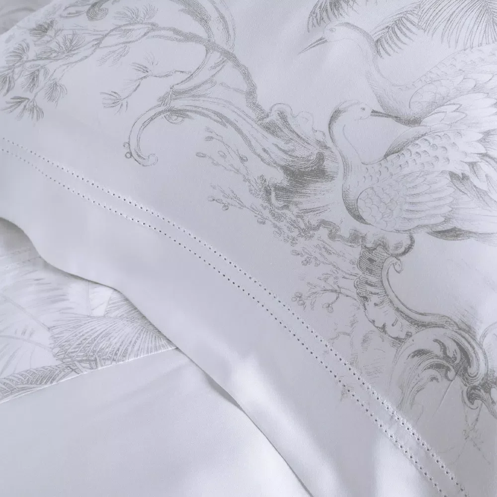 Inspire-se na leveza e sofisticação do jogo de cama King Aironi, uma homenagem à garça e à tranquilidade das margens do rio Arno. Com estampa artística, feita à mão na Itália, o design captura a beleza sublime da natureza em cada detalhe. Confeccionado em cetim 300 fios de fibra 100% bambu, oferece suavidade incomparável e um toque fresco. O sobre lençol de 2,80m x 2,80m é perfeito para uma cama impecável, enquanto o lençol com elástico de 1,93m x 2,03m x 45cm garante ajuste perfeito. As fronhas de medidas 50cm x 70cm, com 4 abas e acabamento ponto ajour, completam a composição. Viva a essência do bem viver com elegância e conforto absolutos.
