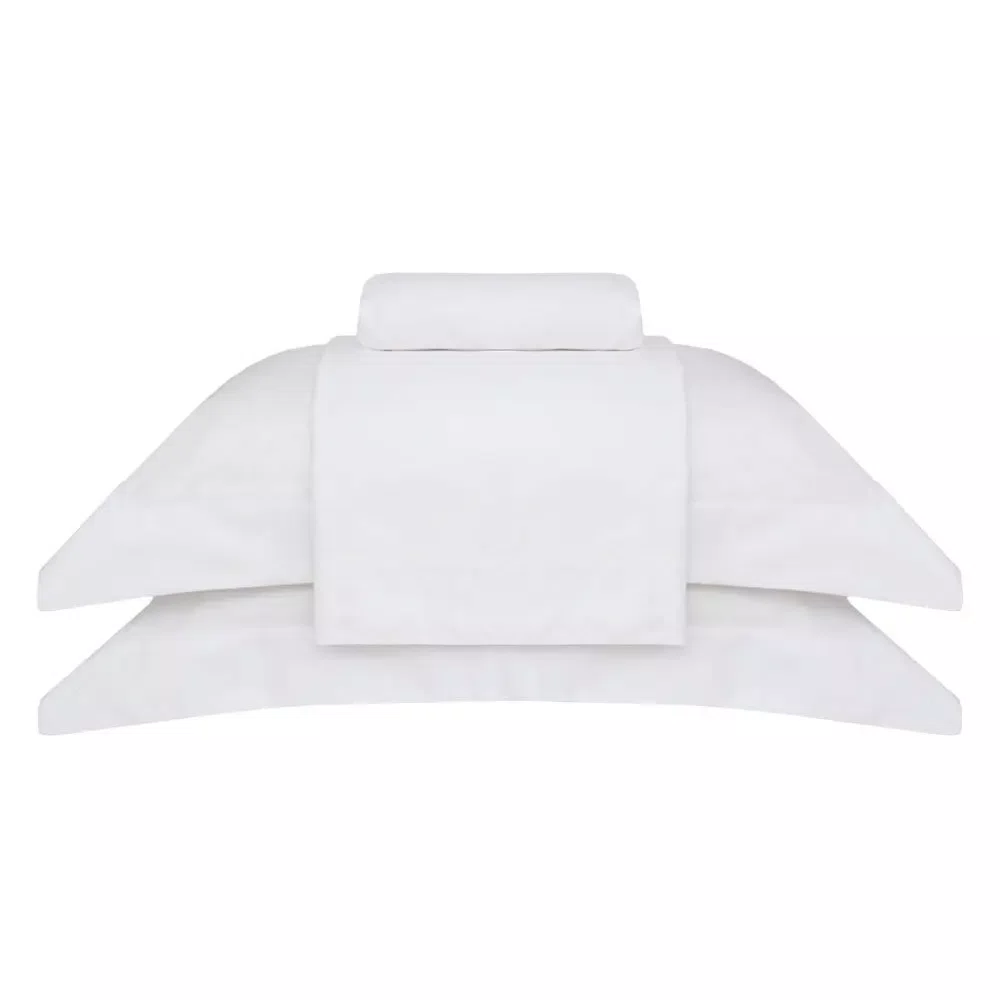 Contém: 1 sobrelençol 2,80 m x 2,80 m + Lençol elástico 1,93 m x 2,03 m x 40cm + 2 fronhas 50 cm x 70 cm