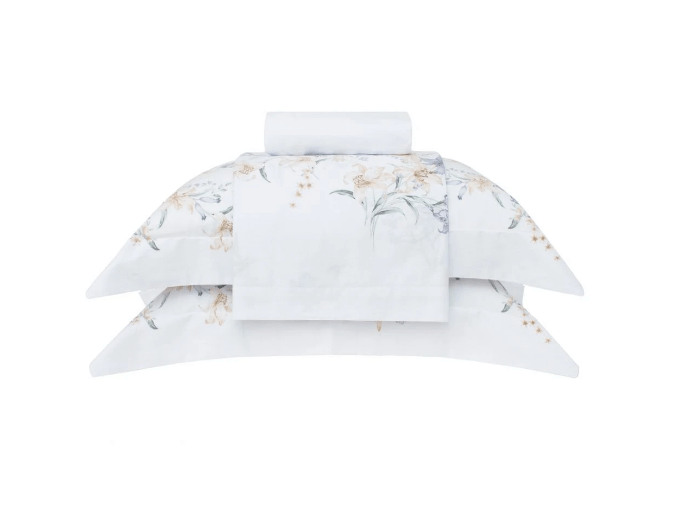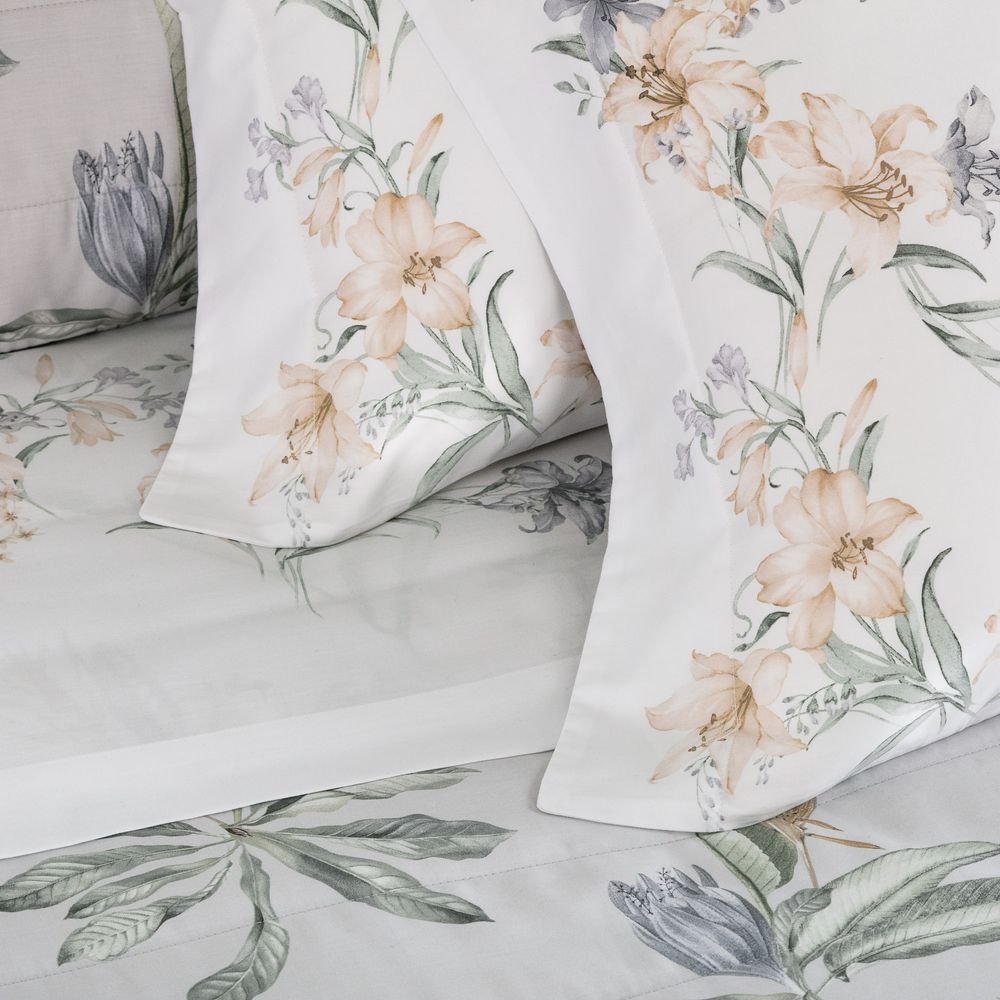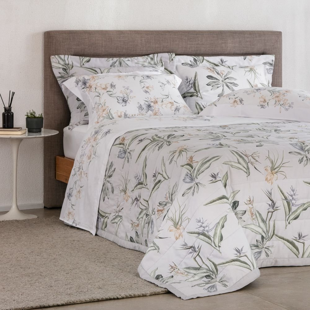 Jogo de cama Bud Vision Fiji. É produzida em tecido 100% algodão cetim 300 fios, Fio Penteado de excelente qualidade. Moderna e muito refinada, a Coleção Fiji é pura sofisticação. Ricos elementos botânicos adornam o modelo com beleza e harmonia. Seu toque é acetinado e extremamente macio e muito confortável. Fronha 3 abas com estampa localizada, lençol branco com elástico, sobrelençol com dobra feita e estampa localizada na vira. A Buddemeyer é referência em qualidade e estilo. Qualidade e design Buddemeyer