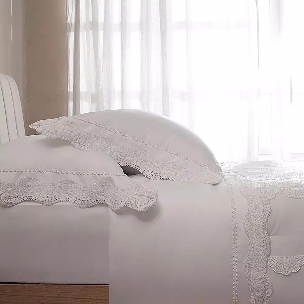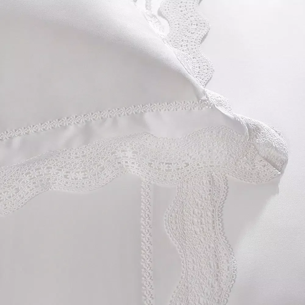 Um clássico bordado guipure rico em detalhes, formado por florais com acabamento scalloped cria um visual chique e atemporal na Coleção Gianni. Toda a pureza e neutralidade do branco evidenciam um modelo refinado e muito sofisticado, com facilidade para se criar diferentes combinações decorativas. Seus 400 fios de cetim em puro algodão com fibras longas, constroem uma trama leve, com suavidade convidativa ao toque, resistência e fácil manutenção. Luxuoso e sofisticado, com acabamento belo e delicado. A Buddemeyer é referência em qualidade e estilo.