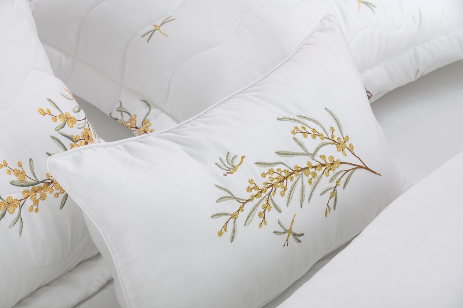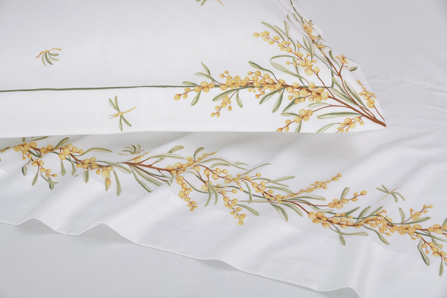 As belas árvores de mimosa que nos recebem ao entrar na Isola Bella inspiraram a criação deste jogo de cama com pinceladas em aquarela. Cada detalhe captura a essência desse charmoso lugar, trazendo uma aura de harmonia, alegria e elegância ao seu espaço. É uma oportunidade perfeita para transformar o ambiente, infundindo nele uma energia refrescante e acolhedora. Deixe-se envolver por essa combinação única de cores e sensações, e permita que sua casa se torne um refúgio de bem-estar e inspiração.