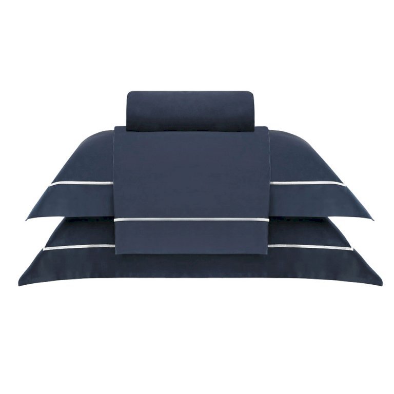 Informações do Produto: Marca: Buddemeyer Linha: Nilo Cor: Azul Marinho, Bege Quantidade de Peças: 04 Peças Material: Tecido 500 fios egícpio, 100% algodão, fio penteado Medidas: Sobrelençol 280x280cm, Lençol 193x203x45cm, Fronhas 50x70cm Instruções de Lavagem: Lavar antes de usar cores escuras devem ser lavadas separadas das cores claras