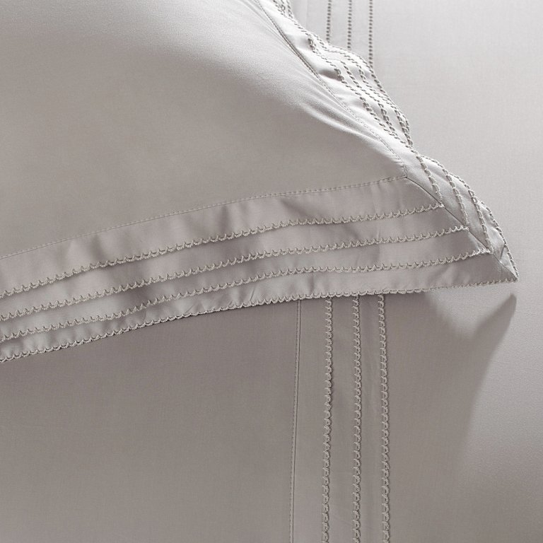 Informações do Produto Marca Buddemeyer Luxus Modelo Palladio Cor Cinza Lunar,Cinza Material Tecido 400 fios - 100% algodão, fio penteado Tamanho S. King Medidas 1 sobrelençol 280x280cm + 1 lençol 193x203x40cm + 2 fronhas 50x70cm