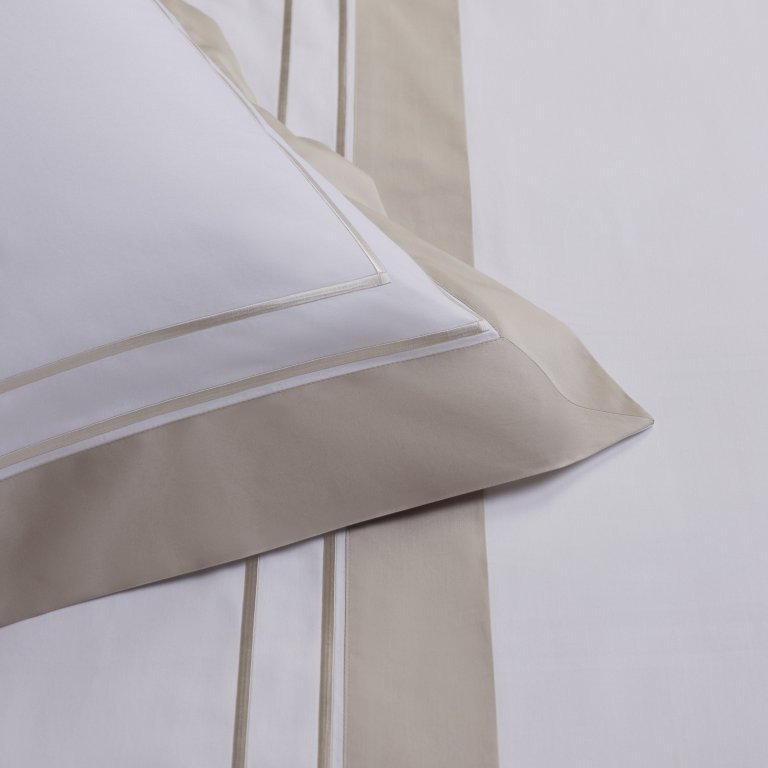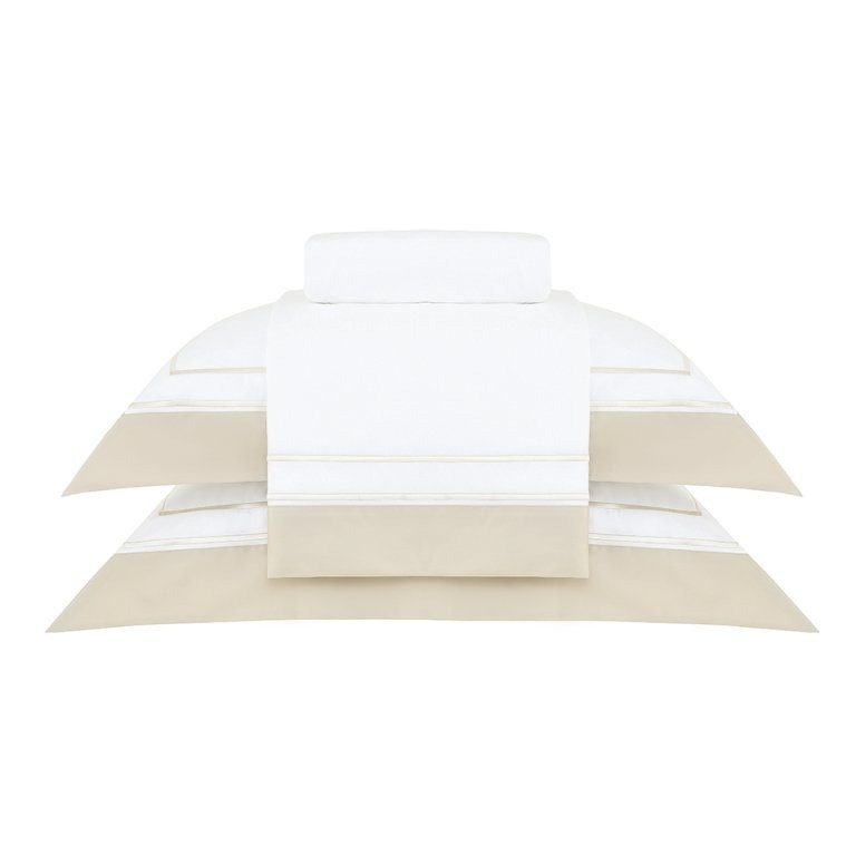 Jogo de cama Buddemeyer Luxus Sávile - Inspirada na alfaiataria, a Coleção Sávile possui design sofisticado, tornando a decoração da cama harmoniosa e elegante. Sua moldura em tecido contrastante e duplo ponto cheio, cria toque de brilho ao fundo branco, com visual alinhado e repleto de refinamento. Em 400 fios de cetim de puro algodão, o modelo possui toque delicado com elevada maciez, trazendo conforto e muito aconchego.