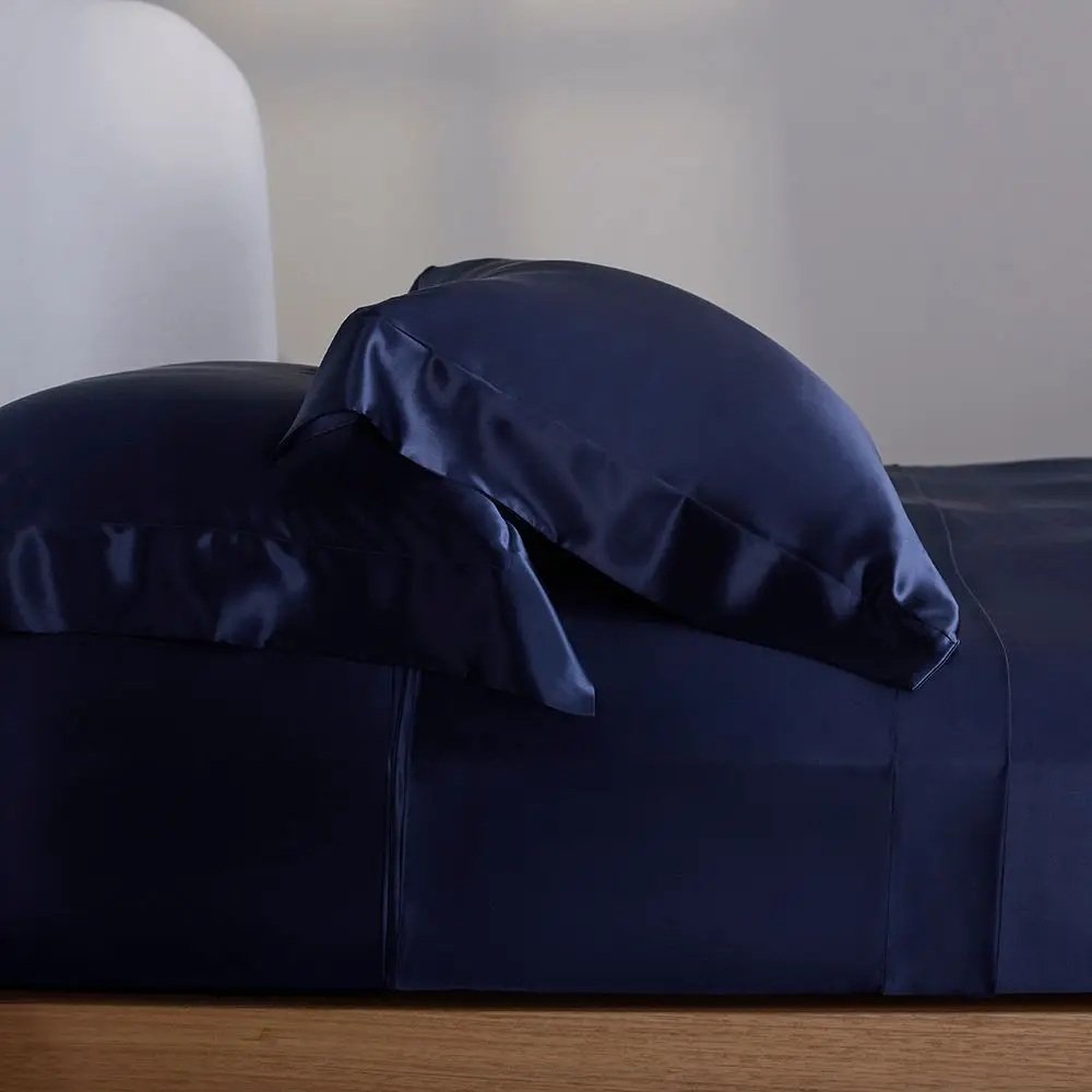 Cor: Azul Marinho Marca: Buddemeyer Luxus Conteúdo: 1 sobrelençol 280cm x 270cm / 1 lençol 193cm x 203cm x 43cm / 2 fronhas 50cm x 70cm Composição: tecido 100% seda Tipo de Material: tecido 100% seda Instruções de Cuidado: Cores escuras devem ser lavadas separadas das cores claras / Lavar em água fria ou em temperatura de até 60°C / O melhor sabão para manter as características do produto é o de coco ou neutro / Não colocar sabão diretamente no produto / Evite alvejantes e quaisquer produtos a base de cloro, eles atacam o corante dos tecidos / Não exagere no uso de sabão em pó e use pouco amaciante / Permite secadora em temperatura baixa / Temperatura máxima da base do ferro 110°C / Não usar ferro a vapor / Não lavar a seco