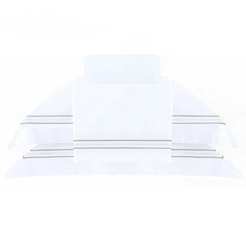 Informações Do Produto Cor: Branco/Borda Verde Conteúdo: 1 sobrelençol 280x290cm + 1 lençol 190x200x45cm + 2 fronha 50x70cm Composição: 100% algodão, fio penteado Tipo de Material: tecido 600 fios