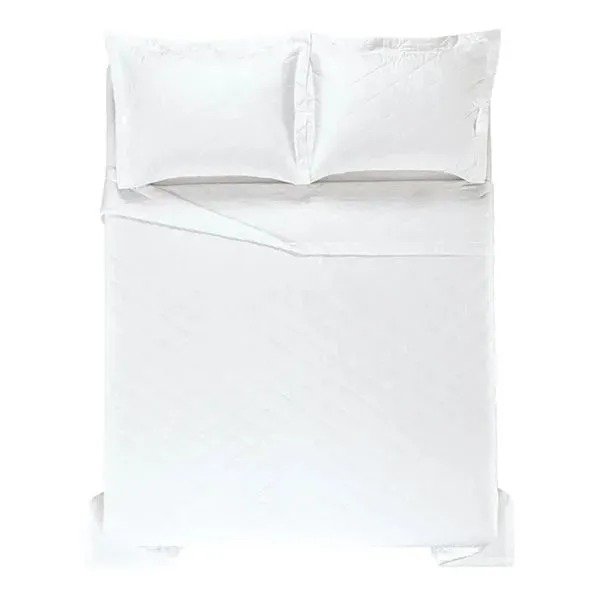 Informações do Produto: Marca: Karsten Linha: Bossa Cor: Branco Material: 300 Fios, 100% Algodão, Manta de Enchimento 100% Poliéster. Quantidade de Peças: 03 Peças: Medidas: Cobre Leito: 2,20m x 2,60m, Fronhas: 50cm x 70cm Acabamento: Colcha com cantos quadrados, Porta-travesseiro com 3 abas de 5cm, Matelassado Antipilling, Hipoalergênico, Thermobond, Algodão Egípcio Penteado, Toque Supremo, Altamente respirável, Fácil de passar, Natural, Maleável e com ótimo caimento, Visual com leve brilho, Enchimento 100% poliéster. Instruções de Lavagem: Lavação a 40ºC, Proibido alvejar, Secar em tambor com temperatura máxima de 60º, Ferro de passar com temperatura máxima de 110º C, Proibido lavar a seco.