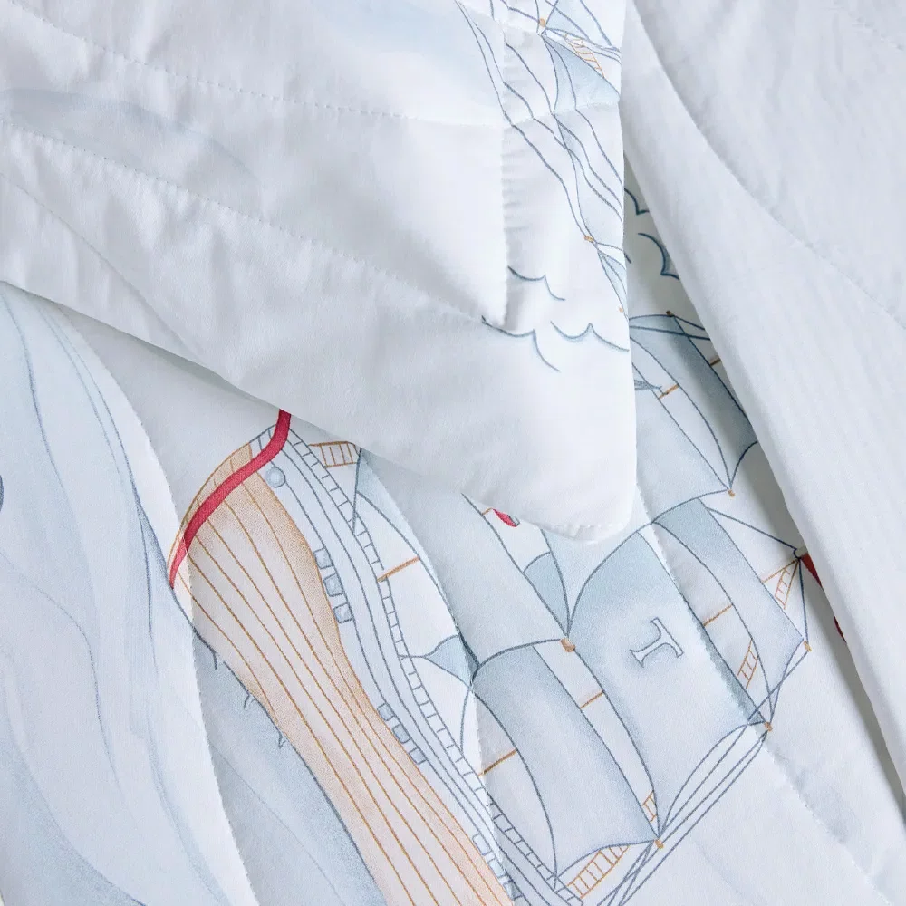 Transforme o quarto infantil em um cenário de aventura com o Jogo de Colcha Casal Infantil Caravella. Confeccionado em Percal 200 fios 100% algodão, com tecido sanforizado e mercerizado, este conjunto é uma celebração da lenda dos piratas de Cinque Terre. A colcha com manta de 100 g, exibe um encantador design de caravelas navegando pelo Mar da Ligúria, desenhadas à mão. Com porta-travesseiros coordenados, o jogo de colcha é perfeito para momentos de conforto e diversão, oferecendo um toque carinhoso e acolhedor para noites repletas de abraços e sonhos encantados.