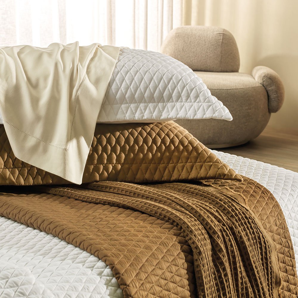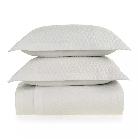 | Acabamentos | Colcha com cantos quadrados, Porta-travesseiro com 3 abas de 5cm, Matelassado, Antipilling, Hipoalergênico, Thermobond, Algodão Egípcio Penteado, Toque Supremo, Altamente respirável, Fácil de passar, Natural, Maleável e com ótimo caimento, Visual com leve brilho, Enchimento 100% poliéster |