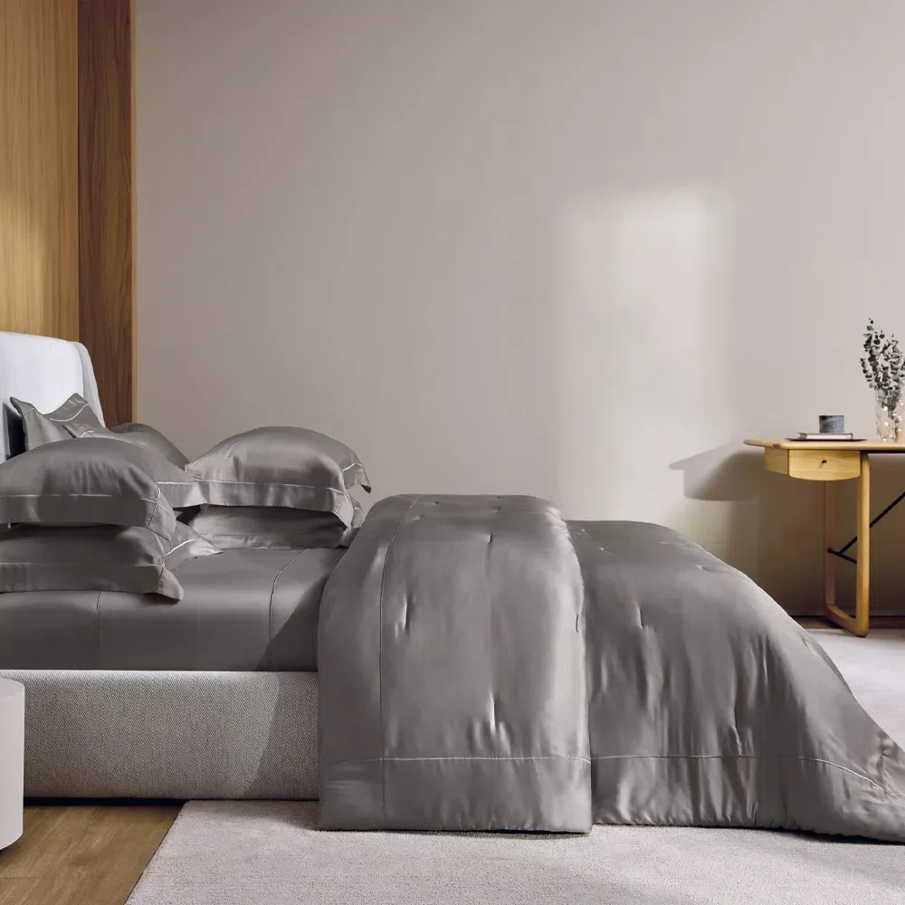 Inspirado na sofisticação do Labirinto della Masone, na Itália, o Jogo de Colcha Girelli traduz elegância e frescor em cada detalhe. Confeccionado em cetim 300 fios de 100% bambu, proporciona um toque ultra macio e uma sensação naturalmente fresca, perfeita para noites de conforto absoluto. O acabamento em ponto royal, que emoldura as fronhas, confere um charme clássico, enquanto a coloração Marmo, em um tom neutro e refinado, complementa com perfeição ambientes sofisticados.
