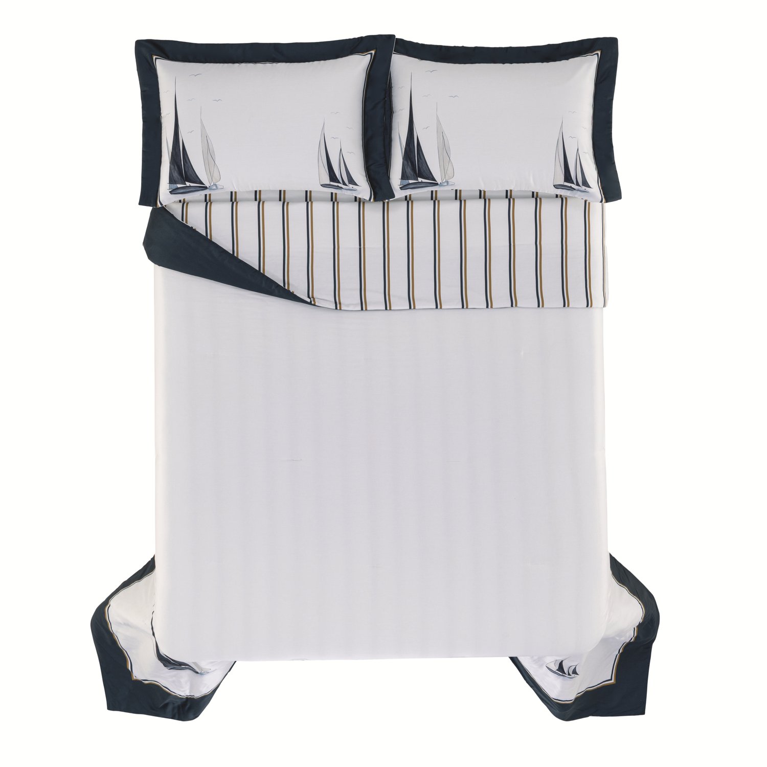 Informações do Produto Tipo: Estampado Acabamento: Tecido sanforizado e mercerizado / Manta colcha 100g Linha: Veleiro Marca: Trussardi Material: Cetim 300 Fios / 100% Algodão Egípcio Características Adicionais: Fronha estampada com 3 abas / Lençol com elástico estampado / Almofada com estampa localizada e acabameneto em cordonê / Colcha e porta-travesseiro estampados Conteúdo: 1 Colcha / 2 Porta Travesseiros Instruções De Lavagem: Lavação a 40ºC / Proibido alvejar / Proibido secar em tambor / Secagem em varal / Ferro de passar com temperatura máxima de 110º C / Proibido lavar a seco.
