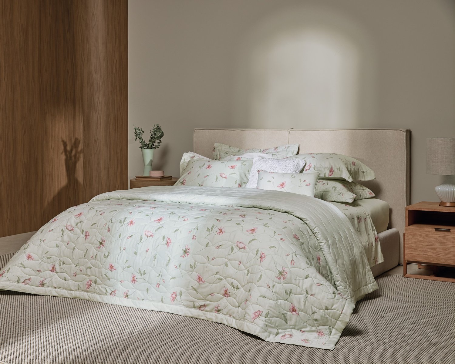 O Nascimento de Vênus, de Sandro Botticelli, inspira o jogo de cama Vênus. As rosas, que segundo a mitologia grega nascem sob os passos de Vênus, são retratadas em aquarela, evocando o romantismo e a leveza. Este design transporta a poesia da obra para o cotidiano, com delicadeza que transforma sua rotina em arte.