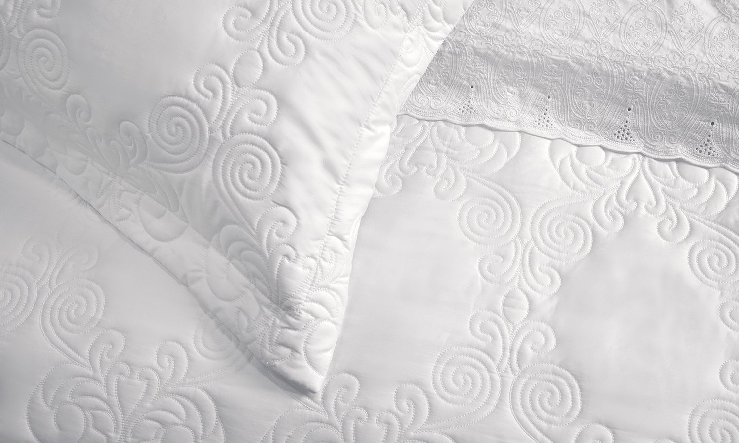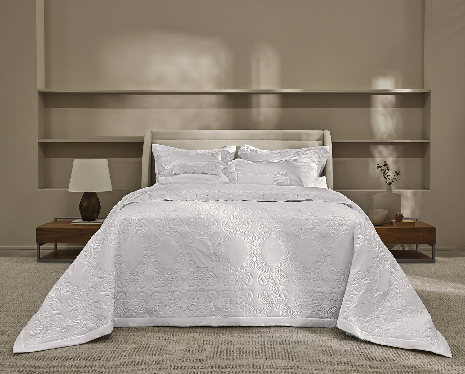 Inspirado na grandiosidade da Galleria Vittorio Emanuele II, que com suas belas ruas cobertas e arquitetura singular, é considerada a "sala de estar" de Milão. A peça é a tradução de arte e beleza, oferece requinte e conforto através de detalhes da arquitetura local, com arabescos na cor branca., evidencia os traços delicados e formas artísticas da comuna italiana. Confeccionada em 100% Algodão Egípcio e Cetim 300 Fios, encanta com seu toque de brilho e caimento suave e macio. A colcha Giancarlo envolve em um ritmo precioso.