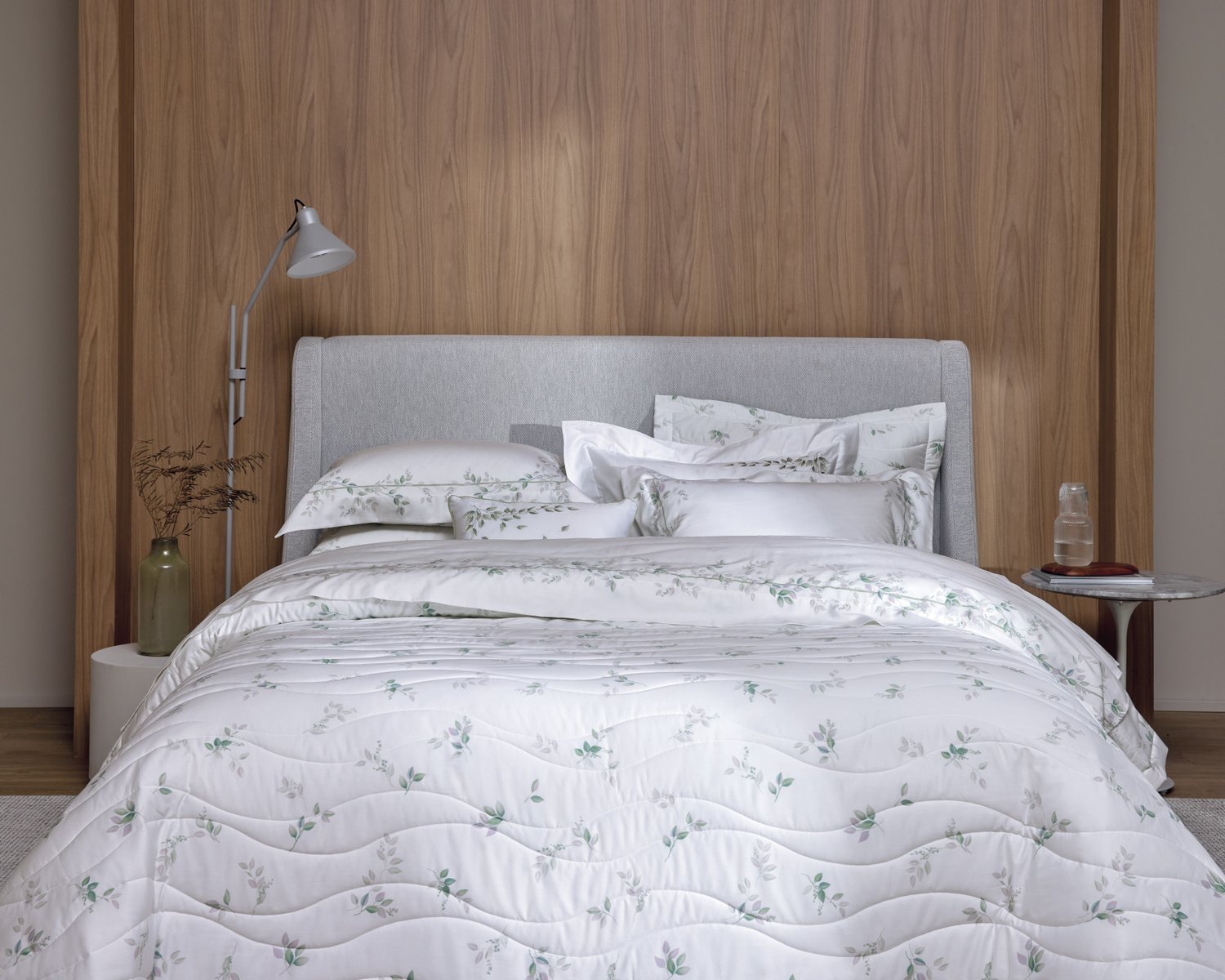 Inspirada na beleza luxuosa da obra renascentista O Nascimento de Vênus, a colcha Queen Botticelli é uma verdadeira expressão de arte e sofisticação. Com design que celebra as folhas de murta, símbolo de renovação e delicadeza na mitologia grega, esta peça traduz elegância em cada detalhe. Confeccionada em cetim de algodão egípcio 300 fios, oferece um toque macio e acetinado que envolve a cama com conforto e primor. Sua estampa em tons frescos, aliada ao matelassado impecável, traz aconchego e serenidade para o ambiente.