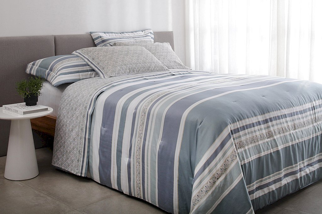 Autêntica e repleta de estilo, a Coleção Lanvin Vision remete à elegância do clássico movimento artístico Art Déco. Muito marcante, o kit colcha matelassado, destaca-se pelo mix de elementos decorativos em tons azuis, com vivacidade e requinte ímpar. Em 270 fios de cetim de puro algodão, o modelo é extremamente macio e confortável, com toque absolutamente delicado, muito agradável de sentir. Qualidade e design Buddemeyer