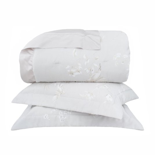 Informações do Produto Marca Buddemeyer Luxus Linha Louis Cor Cinza Material 100% algodão - Enchimento 100% poliéster Tamanho 1 colcha 2,80 m x 2,60 m + 2 porta-travesseiro - 50 cm x 70 cm + 8 cm de abas nos três lados