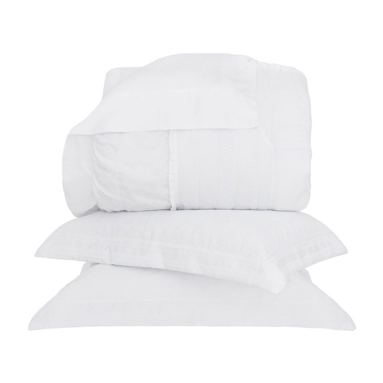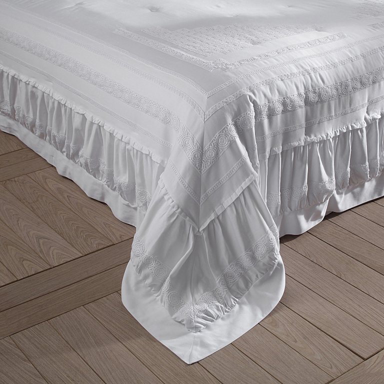 Suntuosa e muito refinada, a Colcha Quatre retrata a herança de antigos mosaicos gregos em seus elegantes bordados. Toda em branco, a peça é trabalhada com um mix de babados e elementos geométricos que ornamentam simetricamente suas laterais, conferindo visual chique, moderno e arrojado. Delicados capitonês formam o centro trazendo charme e beleza sutil ao modelo. Com toque ultra sedoso do cetim de algodão, possui incrível maciez que apura sentidos com inigualável conforto. A Buddemeyer é referência em qualidade e estilo.