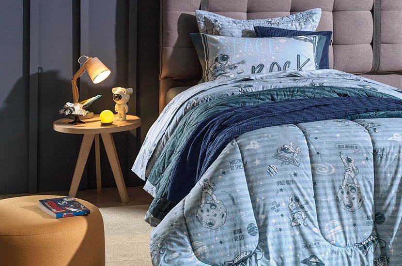 Kit Colcha Infantil Estampado Espacial Karsten Dupla Face