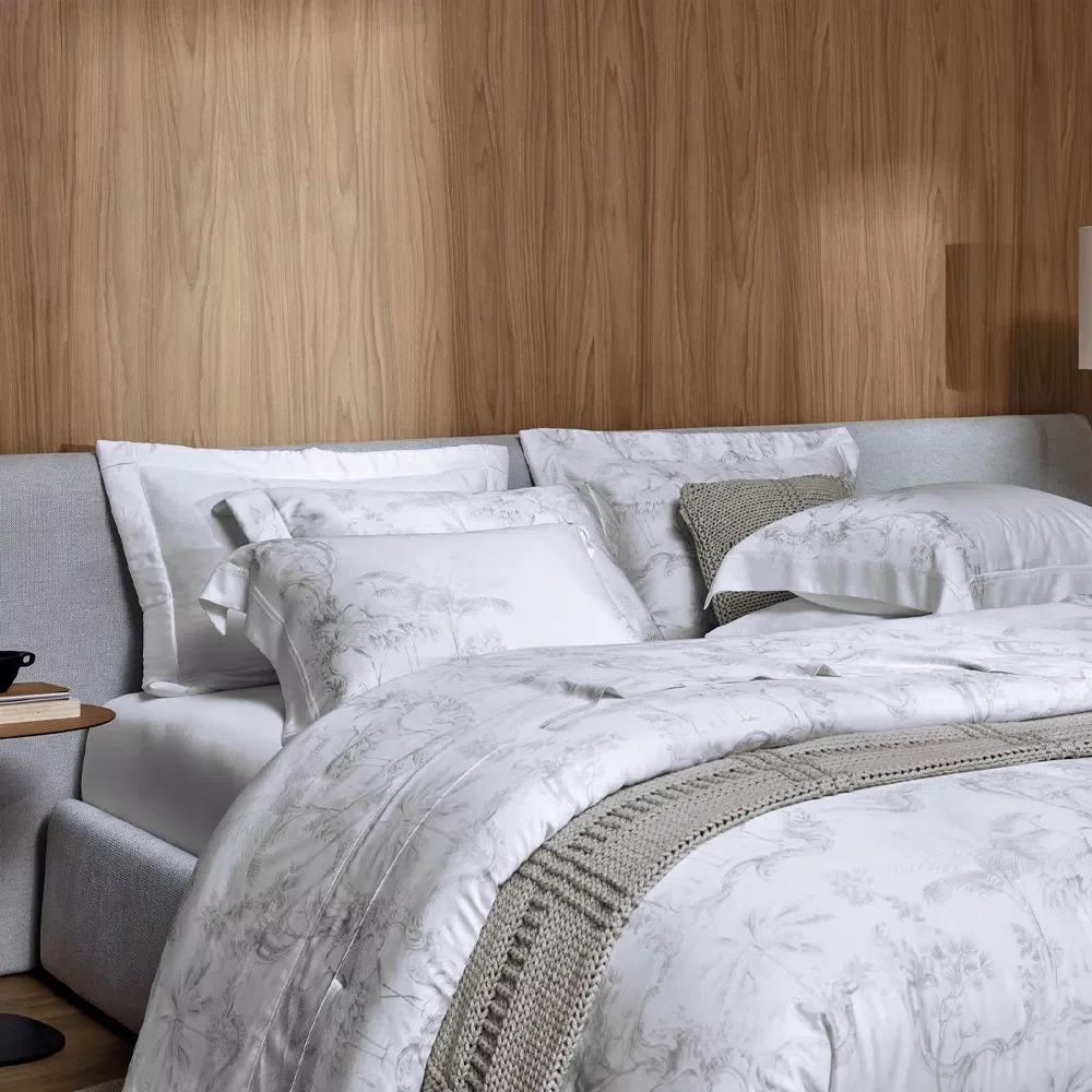 Com inspiração na garça, símbolo de elegância e tranquilidade, o jogo de colcha Aironi reflete a harmonia entre a natureza e a arte. Em suaves pinceladas, a beleza etérea das margens do rio Arno é traduzida em um design exclusivo, feito à mão na Itália. Confeccionado em cetim de 300 fios e 100% fibra de bambu, o tecido mercerizado e sanforizado garante um toque de sofisticação e durabilidade. Transforme sua cama com a leveza e o primor do Aironi.