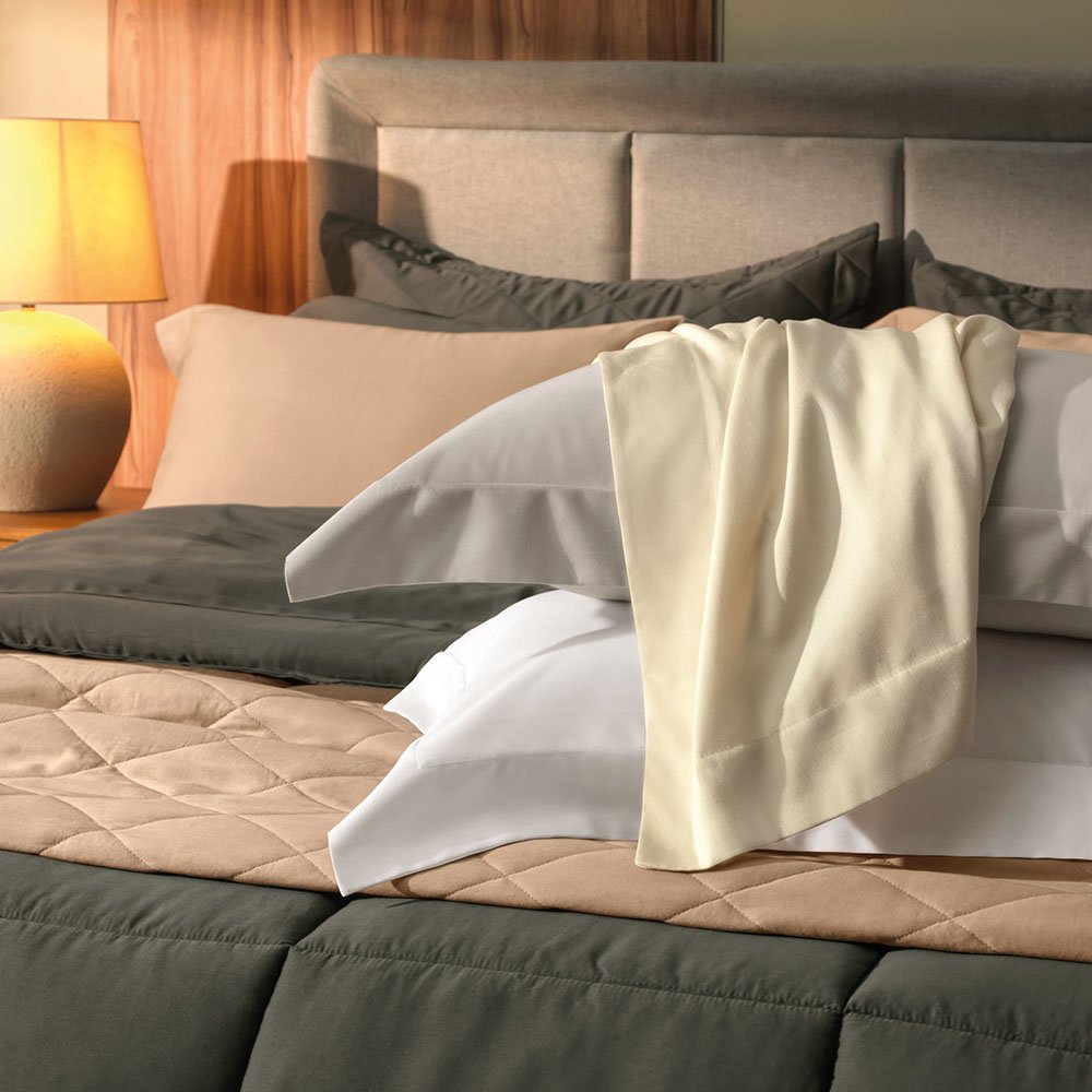 | Acabamento | Fronhas com 3 abas de 7cm. Algodão Soft. Fio Penteado. Antipilling. Hipoalergênico. Algodão egípcio penteado.Toque Supremo. Altamente respirável. Fácil de passar. Natural. Maleável e com ótimo caimento. Visual com leve brilho |