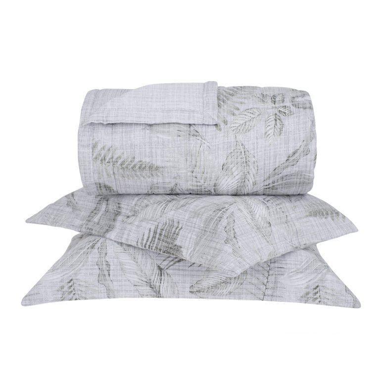 É produzida em tecido 100% algodão cetim 270 fios, Fio Penteado de excelente qualidade. Enchimento 100% poliéster. Dupla face. As estampas tropicais estão em alta na decoração. A coleção Savage se inspira nas florestas selvagens e traz a beleza dos elementos naturais. No kit colcha a estampa de folhas está em toda a peça também sobreposta a textura. Toque acetinado e macio. Porta travesseiro 3 abas. Colcha dupla face. É produzida em tecido 100% algodão cetim 270 fios, Fio Penteado de excelente qualidade. Enchimento 100% poliéster. A Buddemeyer é referência em qualidade e estilo.