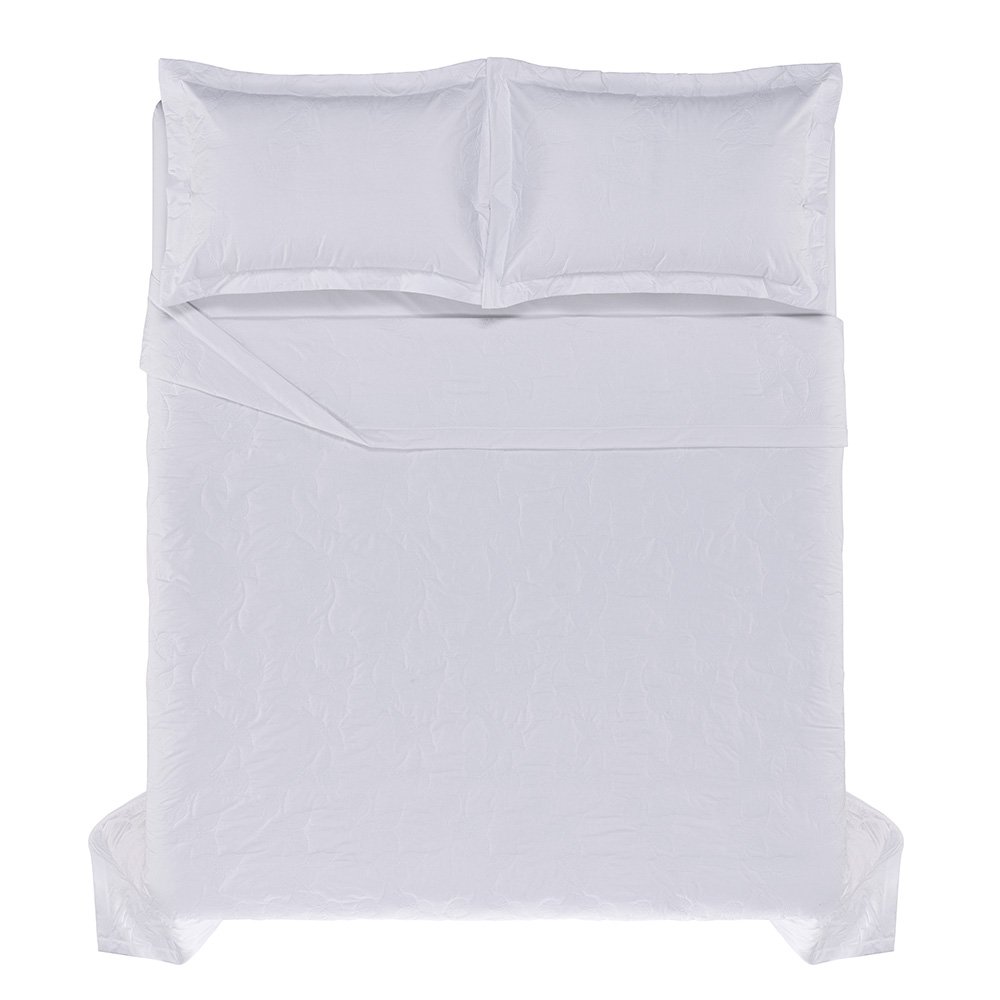 Acabamento: Fronhas com 3 abas, tira bordada aplicada e canto inglês; Dobra feita com tira bordada; Tecido sanforizado e mercerizado.