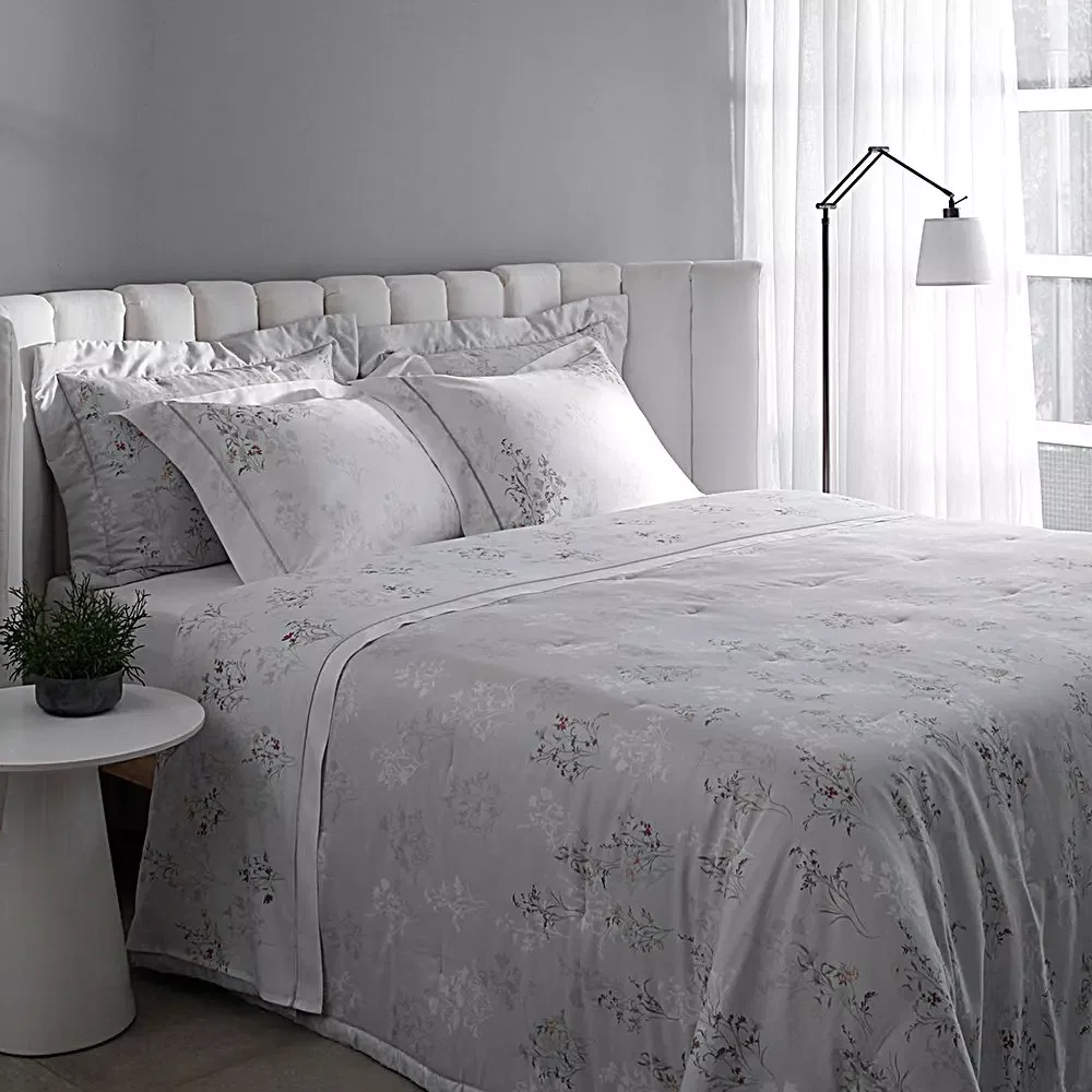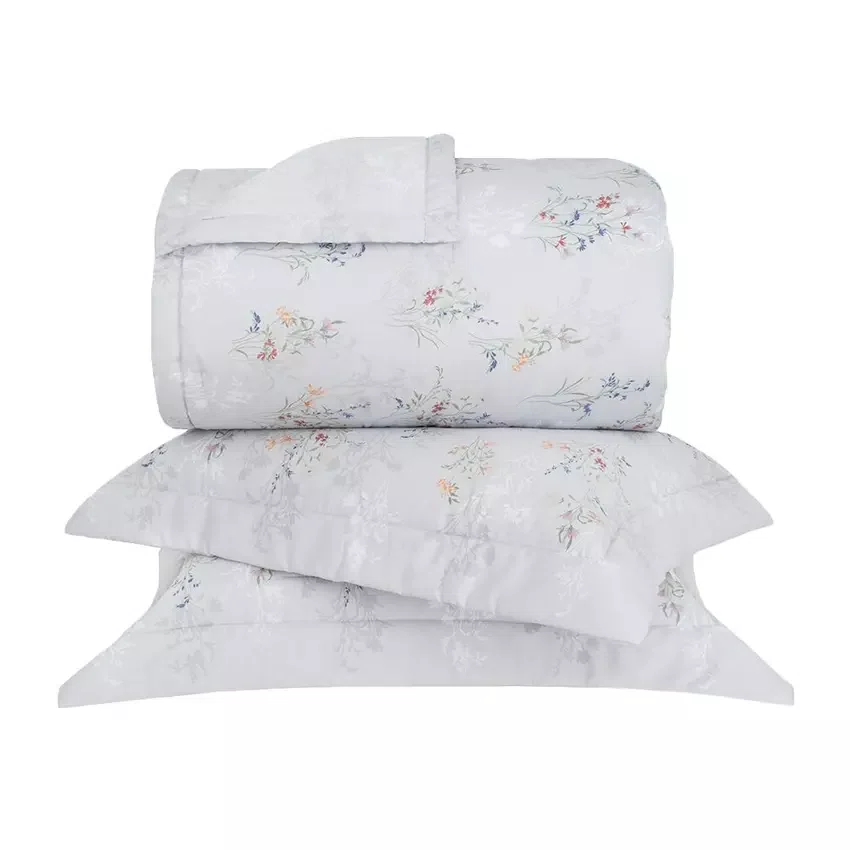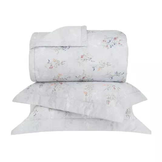 Poética e muito elegante, a Coleção Jardim Botânico possui o delicado frescor e leveza do campo. Buquês coloridos com efeito aquarelado criam uma estética vintage. A sofisticada colcha matelassada com base cinza, recebe o floral em tonalidade branca ao centro e colorida na barra. Os porta-travesseiros apresentam um mix da mesma estampa harmonizando perfeitamente com o jogo de cama. Em 270 fios de cetim de puro algodão sua maciez é extrema, com brilho refinado e toque confortável, muito agradável de sentir. A Buddemeyer é referência em qualidade e estilo.