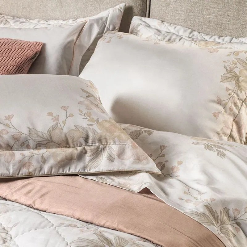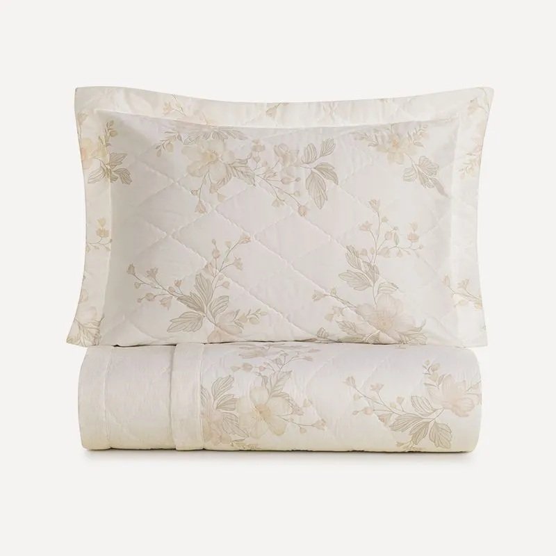 Com flores imponentes e elegância suave, o jogo de colcha Mariah transforma a cama em um convite ao aconchego. Sua estampa floral dimensionada percorre toda a colcha, criando movimento e fluidez, enquanto os tons delicados trazem leveza ao ambiente. A peça é dupla face e conta com acabamento termobond, que mantém o enchimento no lugar mesmo após várias lavagens. Os dois porta-travesseiros coordenados, com acabamento matelassado, completam a composição com harmonia.