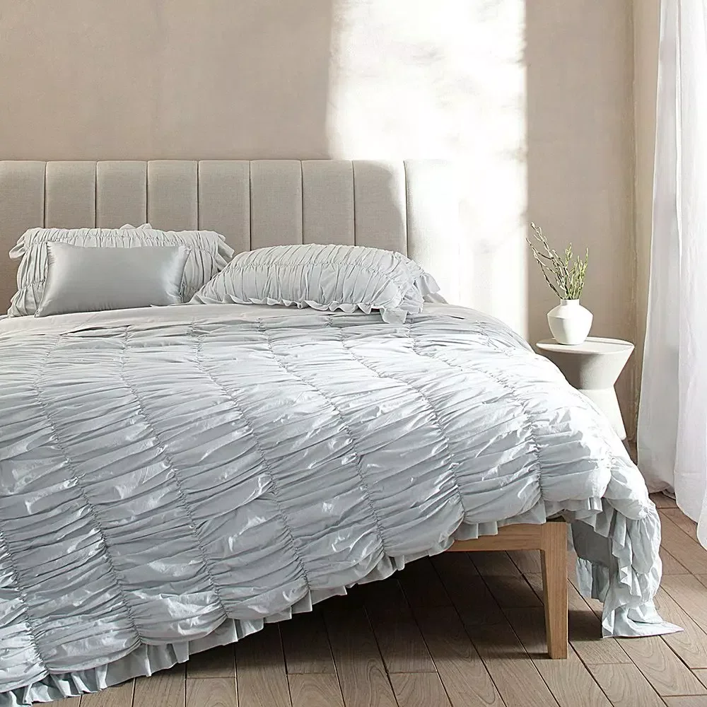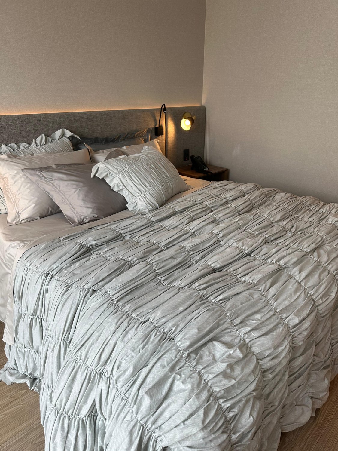 Em moderna releitura dos clássicos jogos de enxovais, a Colcha Verdant conduz a uma deliciosa viagem ao campo. Inspirados em elementos da tendência folk, drapeados desconstruídos, babados e estampas em mini poás criam um modelo de beleza marcante com interessante toque rústico-chic. Extremamente confortável, seu toque delicado em puro algodão apura sentidos, promovendo maciez inigualável para momentos muito aconchegantes. A Buddemeyer é referência em qualidade e estilo.