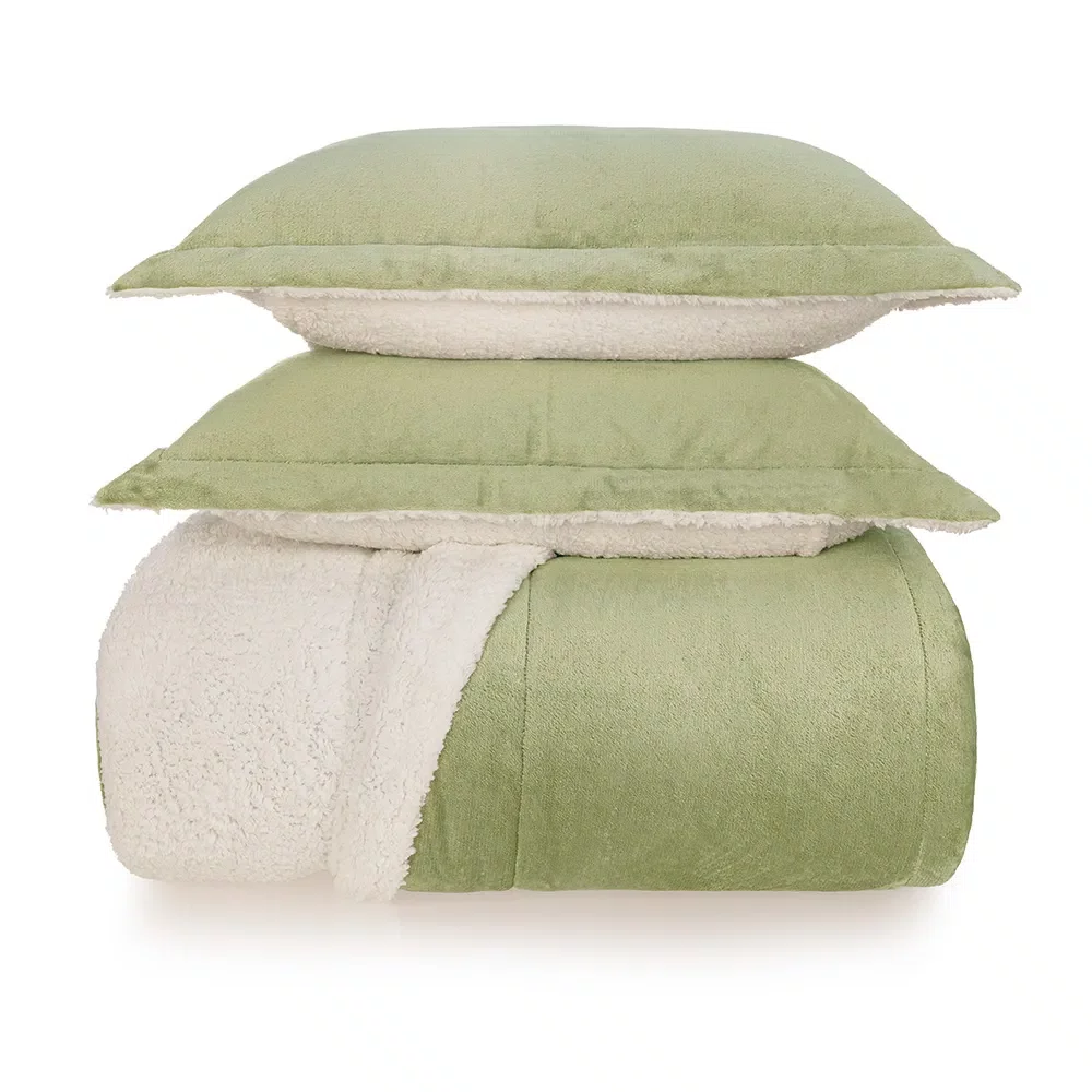 Acabamento: Edredom matelassado; frente e verso em tecido flanel e verso em tecido sherpa; porta travesseiro com 3 abas de 5cm.