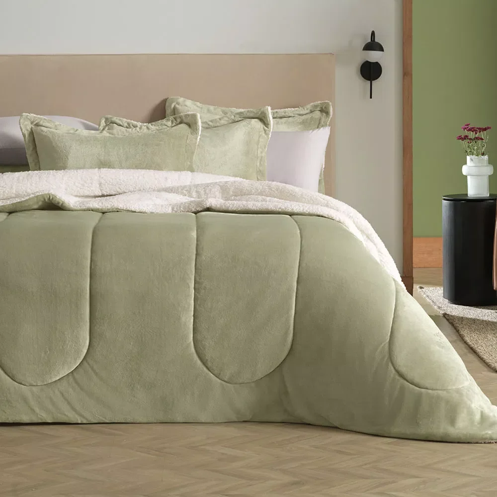 Jogo De Edredom Sonata Queen Karsten Verde Oliva 2,40 x 2,50 m