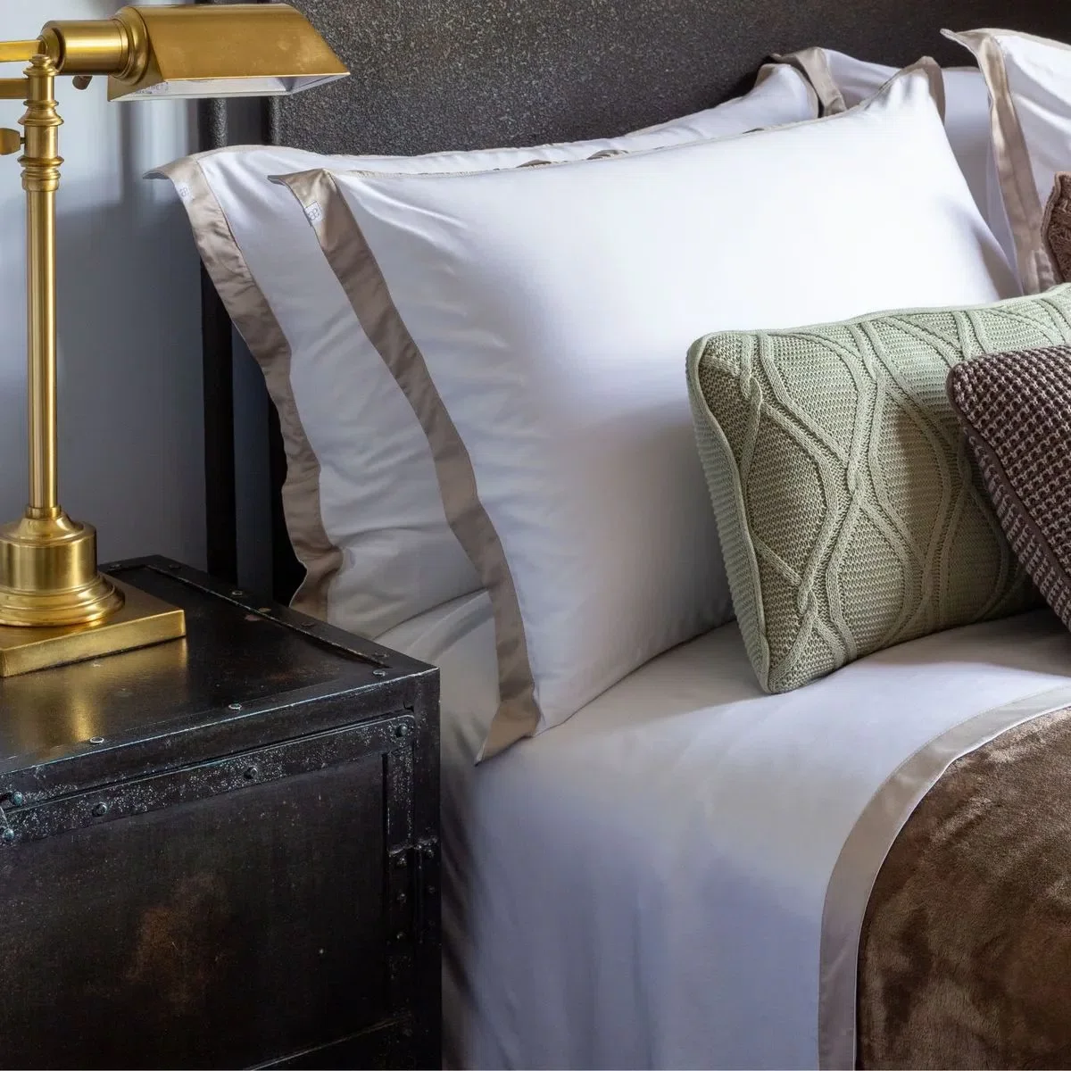 Jogo De Lençol Bamboo Branco/Kaki Artelassê King