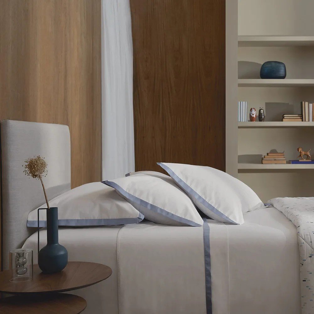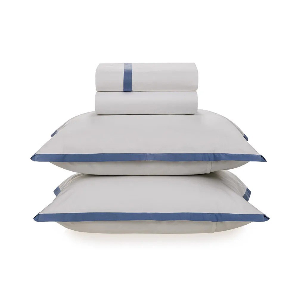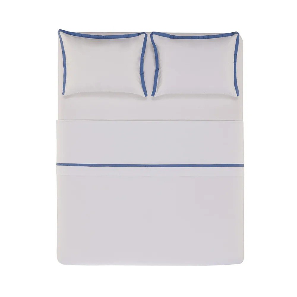 Jogo de Lençol Queen Sartoria 200 Fios Trussardi Branco e Azul Tirreno