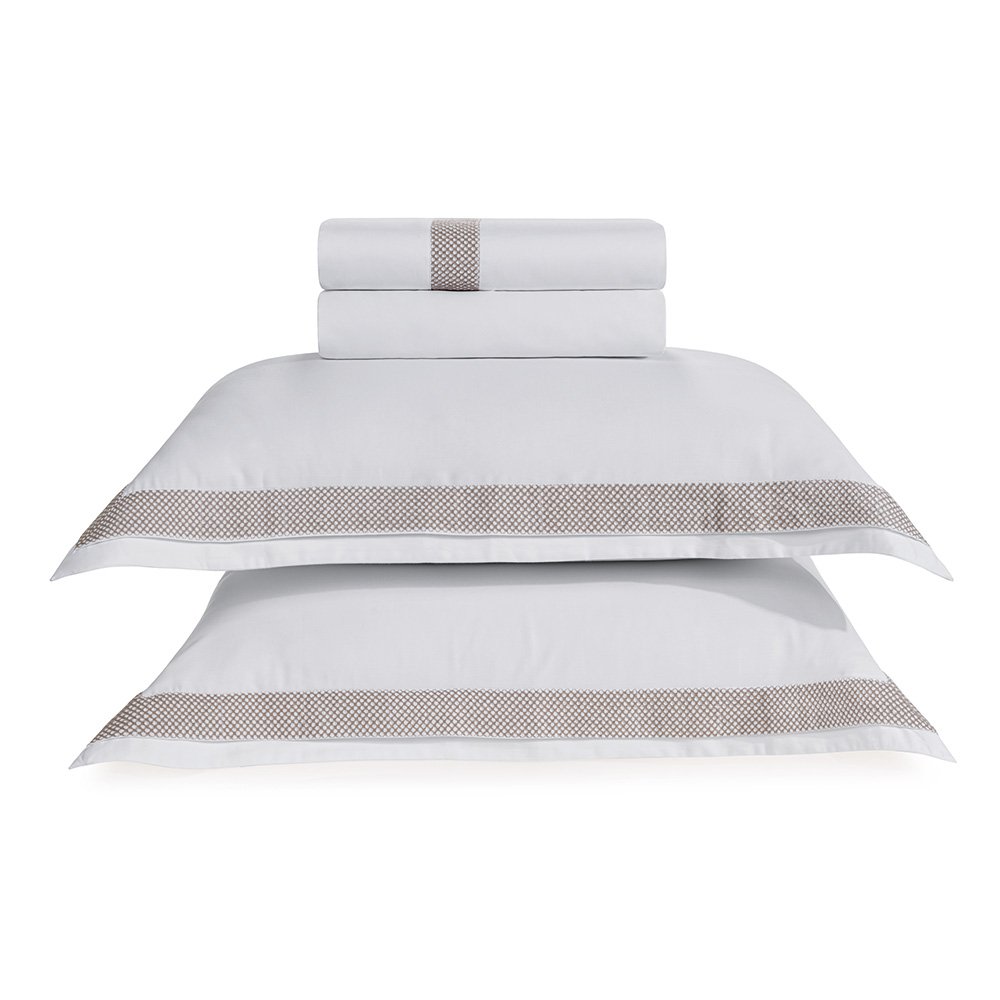 O jogo de cama Porto, com sua aba dupla bordada, transporta você para as pitorescas paisagens costeiras da região italiana. Deixe-se envolver pela sofisticação e pelo charme deste jogo de cama, transformando seu quarto em um refúgio de serenidade e beleza, onde as memórias de Cinque Terre se entrelaçam com o conforto do lar.