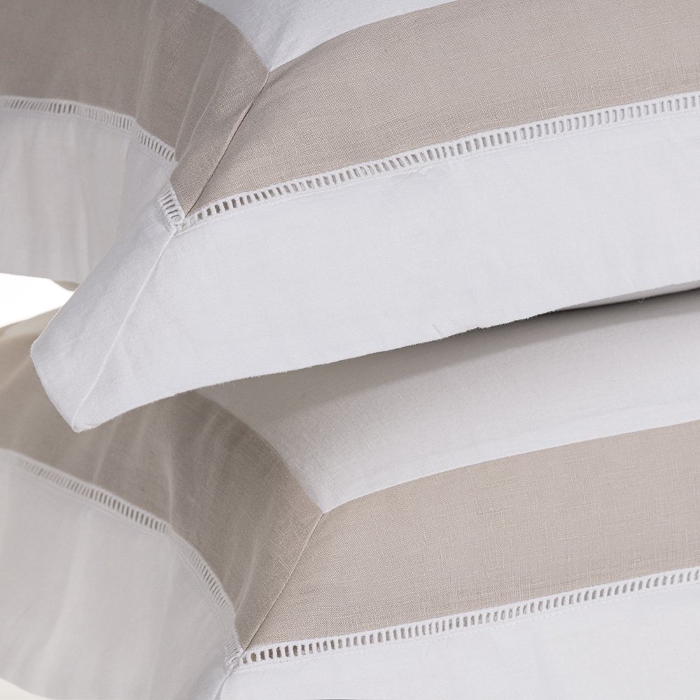 O linho traduz a busca contínua pela sofisticação, refletindo leveza e atemporalidade. A cama Rivus oferece um design clássico e um equilíbrio harmonioso entre tons neutros, destacados por um delicado entremeio bordado. O linho, uma fibra nobre altamente absorvente com propriedades antibacterianas, permite que a pele respire e não retenha umidade. Sua textura suave emana frescor ao toque e evoca uma elegância natural para o seu quarto.