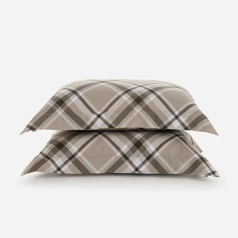 O Kit Fronhas Benjamin combina a contemporaneidade das formas geométricas ao conforto do algodão egípcio 300 fios. Com acabamento estampado por todo o corpo e visual sóbrio em tons de marrom e bege, oferece um toque macio e duradouro para noites de descanso com muita personalidade. Ele complementa o jogo de cama Benjamim, trazendo mais destaque à estampa e mais profundidade à cama posta. Além disso, harmoniza perfeitamente com outros jogos de cama e complementos em tons de branco, areia e grão.