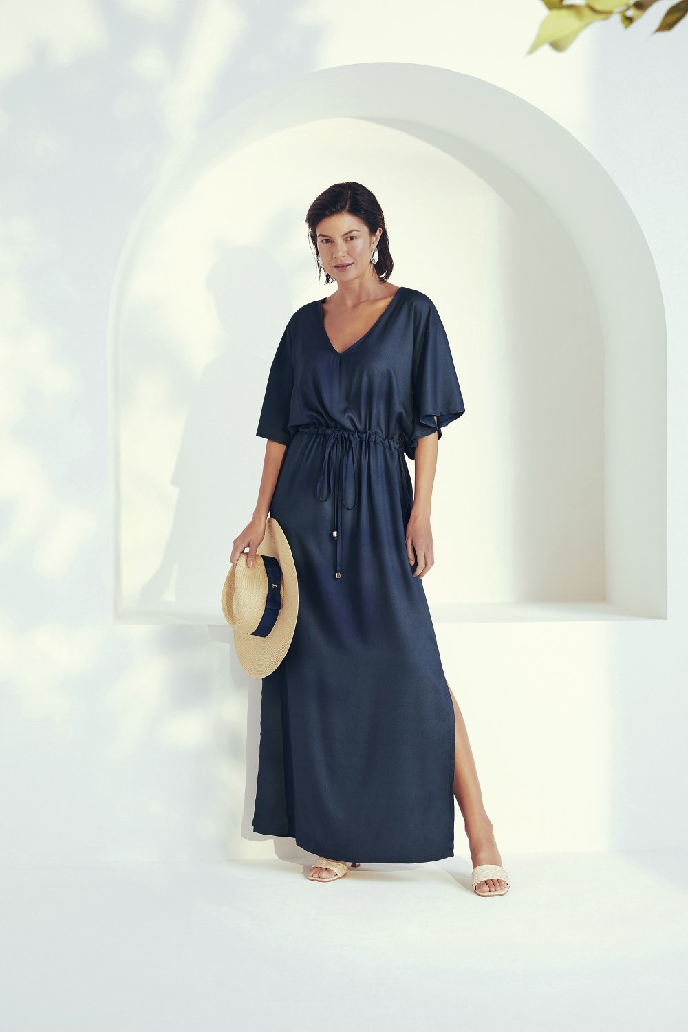Acabamento: Toque macio da viscose; Tecido com brilho;