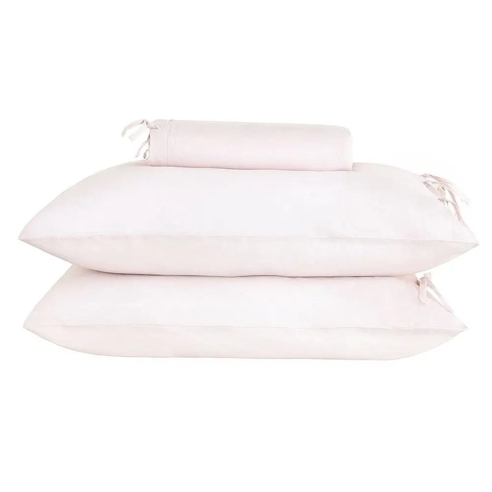 Cor: Rosa Marca: Buddemeyer Luxus Conteúdo: 1 capa para edredom 260cm x 240cm / 2 fronhas 50cm x 70cm Composição: 100% linho Tipo de Material: 100% linho Instruções de Cuidado: Cores escuras devem ser lavadas separadas das cores claras / Lavar em água fria ou em temperatura de até 60°C / O melhor sabão para manter as características do produto é o de coco ou neutro / Não colocar sabão diretamente no produto / Evite alvejantes e quaisquer produtos a base de cloro, eles atacam o corante dos tecidos / Não exagere no uso de sabão em pó e use pouco amaciante / Permite secadora em temperatura baixa / Temperatura máxima da base do ferro 110°C / Não usar ferro a vapor / Não lavar a seco