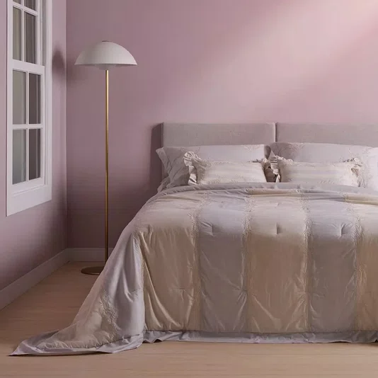 Cor: Cinza Marca: Buddemeyer Luxus Conteúdo: 1 colcha 310cm x 260cm / 2 porta-travesseiro 50cm x 70cm / 8cm de aba nos três lados Composição: 100% algodão - enchimento 100% poliéster Tipo de Material: 100% algodão - enchimento 100% poliéster Instruções de Cuidado: Cores escuras devem ser lavadas separadas das cores claras / Lavar em água fria ou em temperatura de até 60°C / O melhor sabão para manter as características do produto é o de coco ou neutro / Não colocar sabão diretamente no produto / Evite alvejantes e quaisquer produtos a base de cloro, eles atacam o corante dos tecidos / Não exagere no uso de sabão em pó e use pouco amaciante / Permite secadora em temperatura baixa / Temperatura máxima da base do ferro 110°C / Não usar ferro a vapor / Não lavar a seco