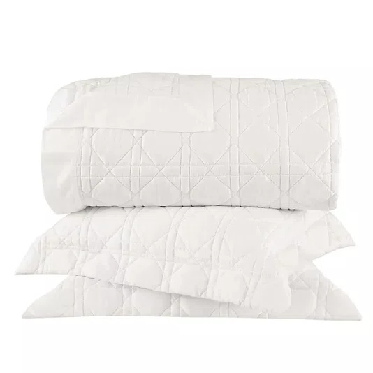 Cor: Bege Platina Marca: Buddemeyer Luxus Conteúdo: 1 colcha 310cm x 260cm / 2 porta-travesseiro 50cm x 70cm Composição: tecido 270 fios / 100% algodão / fio penteado / enchimento 100% poliéster Tipo de Material: tecido 270 fios / 100% algodão / fio penteado / enchimento 100% poliéster Instruções de Cuidado: Cores escuras devem ser lavadas separadas das cores claras / Lavar em água fria ou em temperatura de até 60°C / O melhor sabão para manter as características do produto é o de coco ou neutro / Não colocar sabão diretamente no produto / Evite alvejantes e quaisquer produtos a base de cloro, eles atacam o corante dos tecidos / Não exagere no uso de sabão em pó e use pouco amaciante / Permite secadora em temperatura baixa / Temperatura máxima da base do ferro 110°C / Não usar ferro a vapor / Não lavar a seco