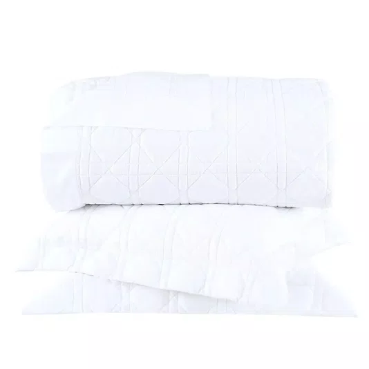 Cor: Branco Marca: Buddemeyer Luxus Conteúdo: 1 colcha 280cm x 260cm / 2 porta-travesseiro 50cm x 70cm Composição: tecido 270 fios / 100% algodão / fio penteado / enchimento 100% poliéster Tipo de Material: tecido 270 fios / 100% algodão / fio penteado / enchimento 100% poliéster Instruções de Cuidado: Cores escuras devem ser lavadas separadas das cores claras / Lavar em água fria ou em temperatura de até 60°C / O melhor sabão para manter as características do produto é o de coco ou neutro / Não colocar sabão diretamente no produto / Evite alvejantes e quaisquer produtos a base de cloro, eles atacam o corante dos tecidos / Não exagere no uso de sabão em pó e use pouco amaciante / Permite secadora em temperatura baixa / Temperatura máxima da base do ferro 110°C / Não usar ferro a vapor / Não lavar a seco