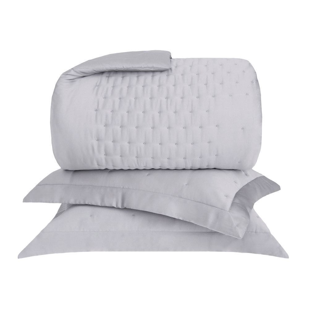 Acabamento: Colcha: Seda na frente e cetim no verso; Porta travesseiro: Abas nos três lados com fechamento envelope lateral