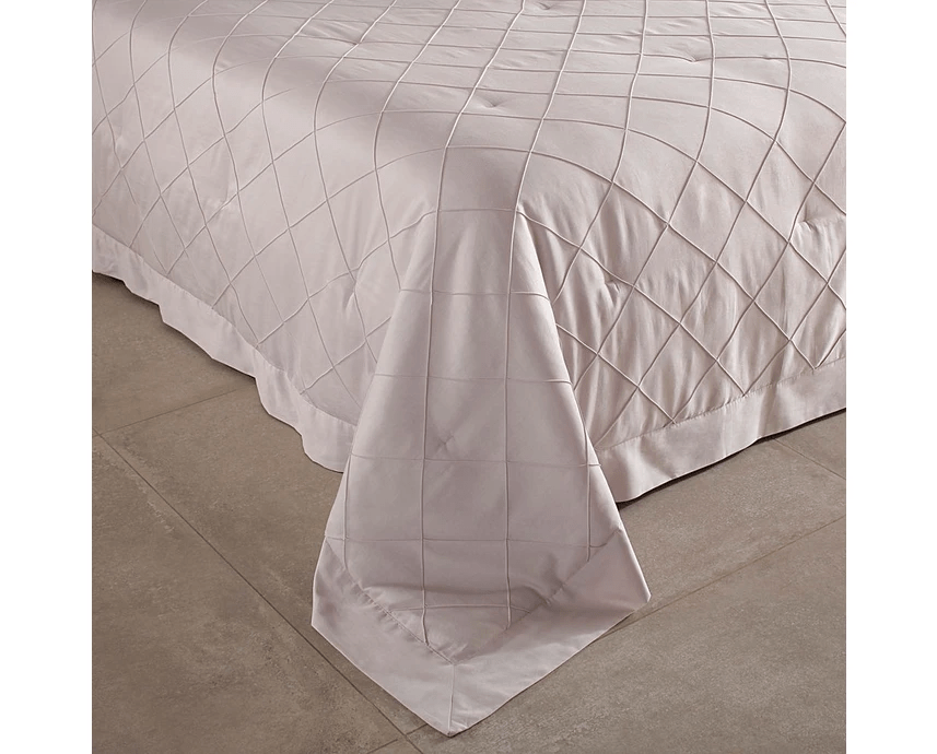 Extremamente elegante, a colcha Etienne é clássica e minimalista. Com toque acetinado, possui nervuras em losangos que emolduram a peça tornando-a mais decorativa. É confeccionada em cetim 270 fios e 100% algodão penteado. Os porta-travesseiros dispõem de abas nos três lados e seu forro em 100% poliéster. Uma peça que traz suavidade ao ambiente, conforto e delicadeza, resultando em uma noite de descanso ainda mais confortável.