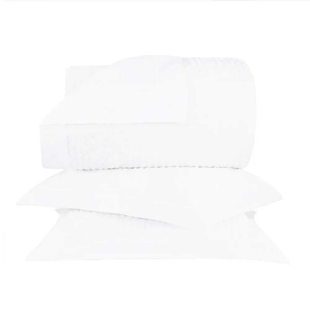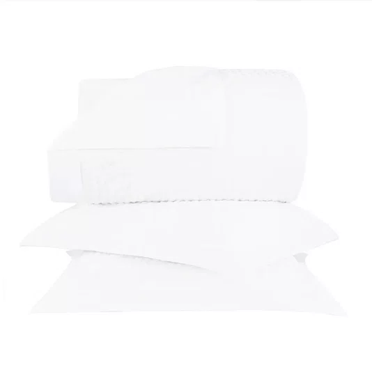 Cor: Branca Marca: Buddemeyer Luxus Conteúdo: 1 colcha 310cm x 260cm / 2 porta-travesseiro 50cm x 70cm / 8cm de aba nos três lados Composição: 99% algodão / 1% de poliuretano / enchimento 100% poliéster Tipo de Material: 99% algodão / 1% de poliuretano / enchimento 100% poliéster Instruções de Cuidado: Cores escuras devem ser lavadas separadas das cores claras / Lavar em água fria ou em temperatura de até 60°C / O melhor sabão para manter as características do produto é o de coco ou neutro / Não colocar sabão diretamente no produto / Evite alvejantes e quaisquer produtos a base de cloro, eles atacam o corante dos tecidos / Não exagere no uso de sabão em pó e use pouco amaciante / Permite secadora em temperatura baixa / Temperatura máxima da base do ferro 110°C / Não usar ferro a vapor / Não lavar a seco