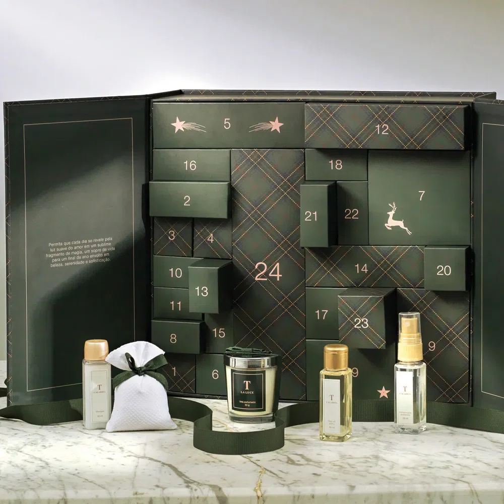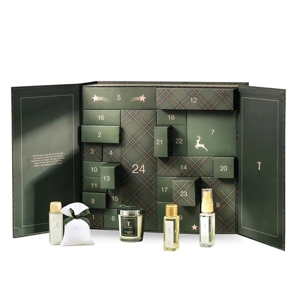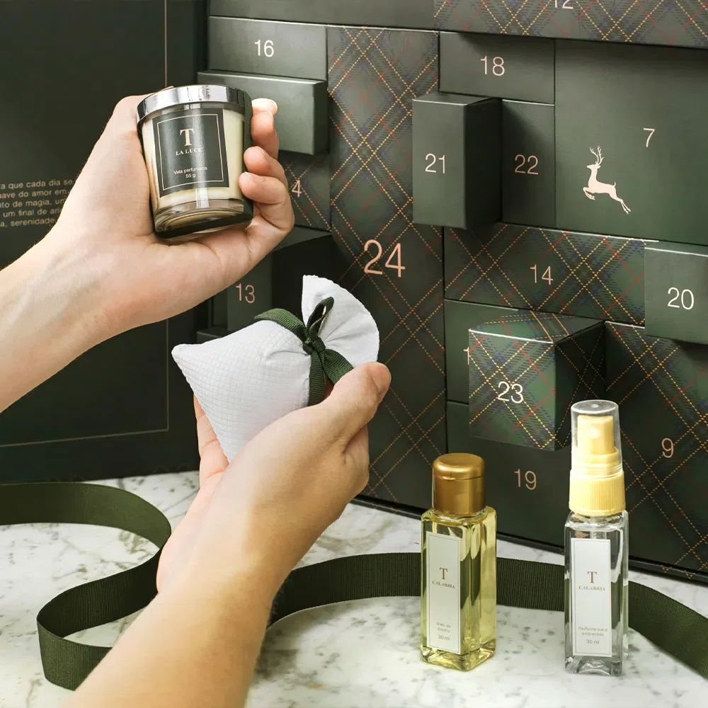 O Kit Calendário Advento Trussardi La Luce é a celebração perfeita para a magia do Natal. Com uma contagem regressiva especial, cada dia revela um mimo encantador, desde loções hidratantes, sabonetes líquidos e em barra, até velas perfumadas, todos imersos nas fragrâncias exclusivas Trussardi Originale, Calábria e La Luce. A cada abertura de caixa, você é presenteado com um novo aroma, como o La Luce que combina notas frescas e cítricas de bergamota e tangerina com a suavidade balsâmica da baunilha e do patchouli. Este calendário não apenas perfuma o ambiente, mas também cria memórias olfativas inesquecíveis que representam o espírito natalino, culminando em uma surpresa especial para o tão aguardado dia 24. O Kit Calendário Advento Trussardi La Luce é mais do que um presente; é um convite para vivenciar a essência do Natal em cada detalhe.