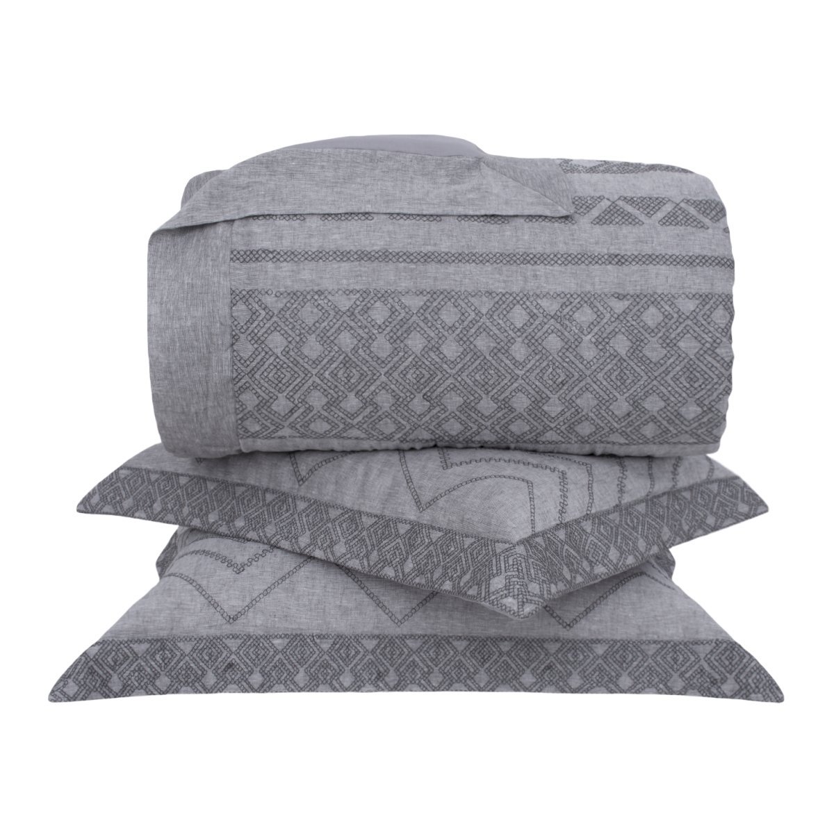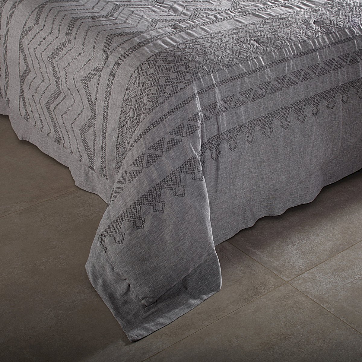 O puro algodão combinado à ancestralidade do linho, tornam a colcha Ethan um item único e excepcional. Apresenta lindos bordados, que fazem referência aos padrões étnicos e clássicos, criando um modelo legítimo e despojado. Sua confecção em 55% linho e 45% algodão na frente, apresenta verso em voile de algodão, tecido fino que confere elegância, a colcha é volumosa como edredom, além de extremamente macia, oferecendo momentos únicos de descanso.