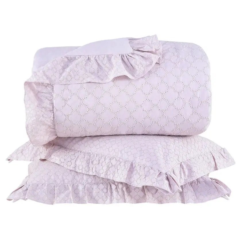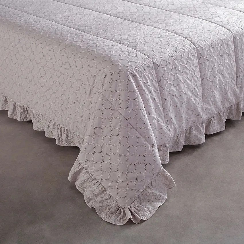 Informações Do Produto Cor: Rosa Almod Conteúdo: 1 colcha 3,14 m x 2,62 m + 2 porta- travesseiro - 50 cm x 70 cm + 8 cm de aba nos três lados Composição: 100% algodão - enchimento 100% poliéster Tipo de Material: algodão