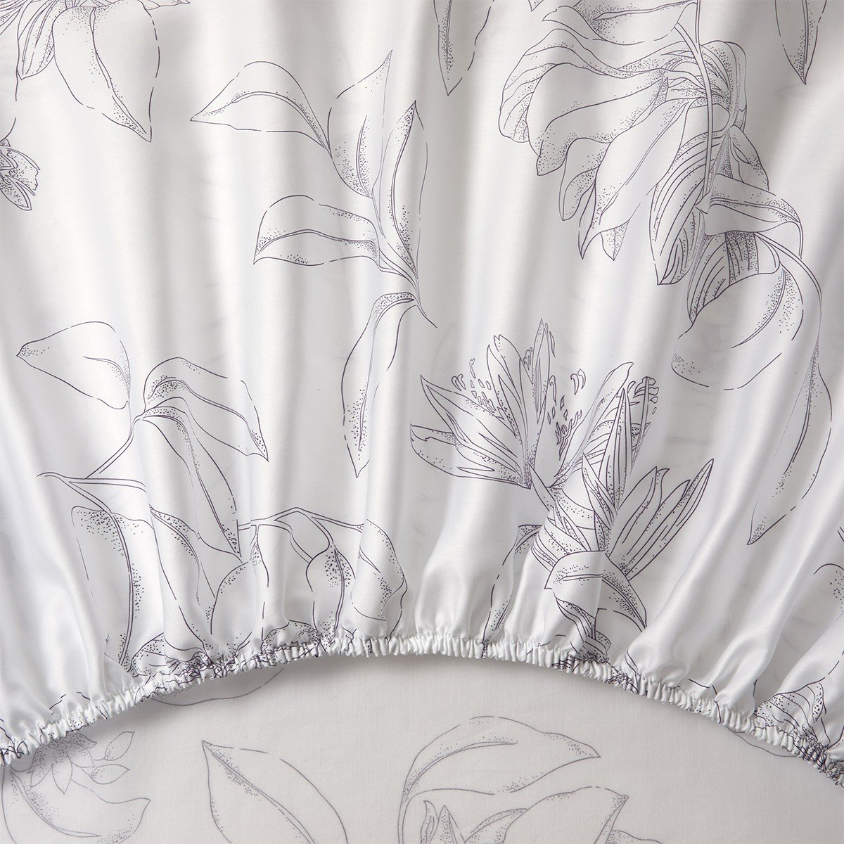 Flores exuberantes que perfumam o jardim. A paleta de cores artística possui pigmentos puros onde flores e folhagens extraordinárias pontuam no algodão acetinado branco.